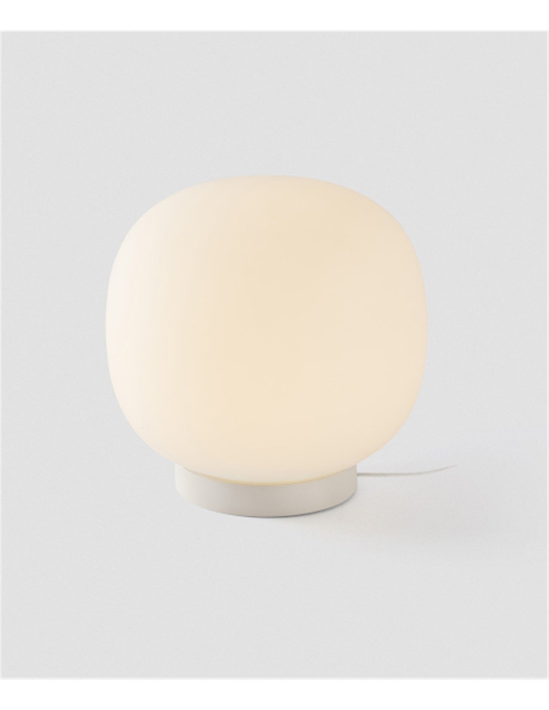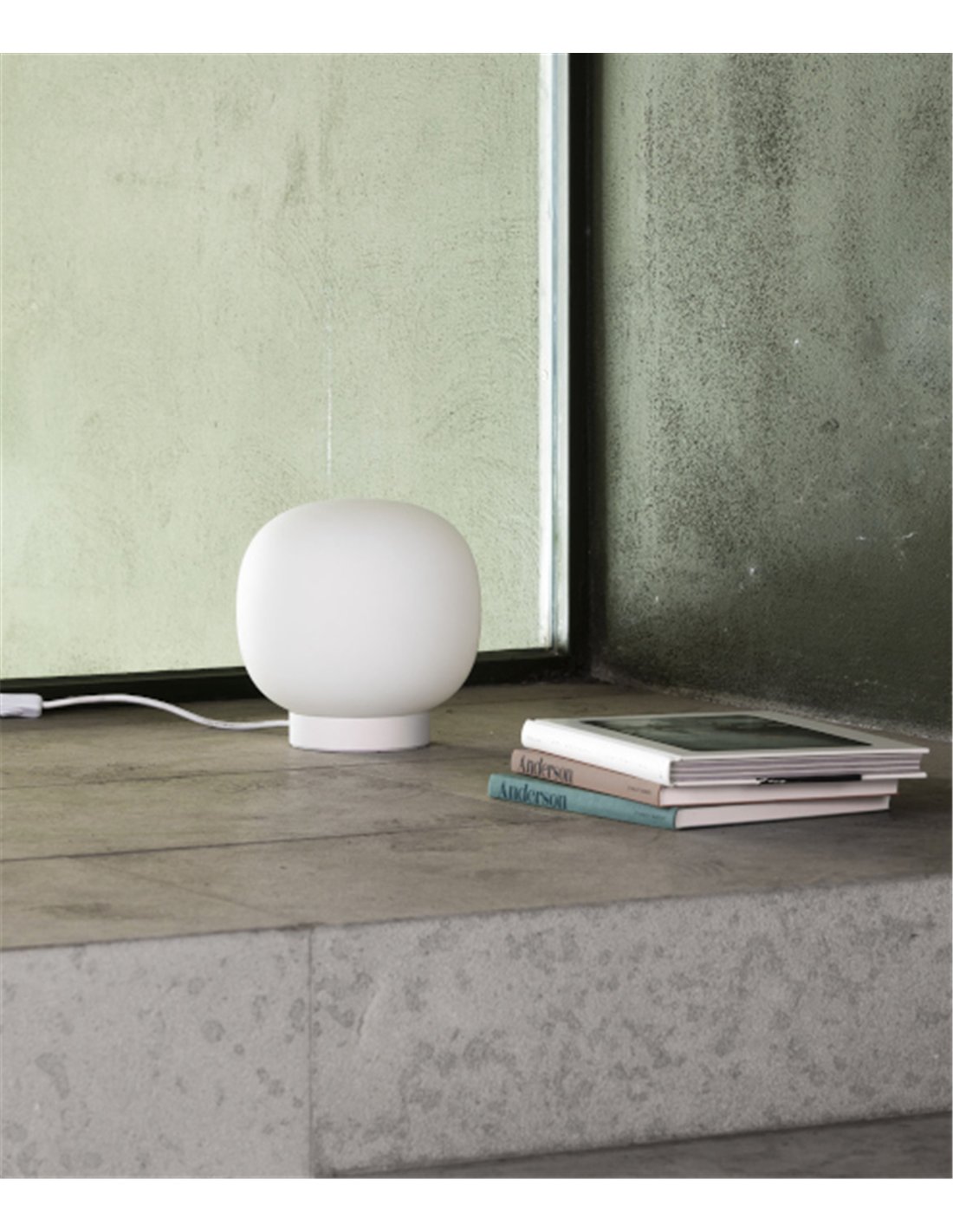 Sobre lámpara de mesa Amelia de Faro; lámpara tipo bola redondeada, 2 acabados, pantalla de vidrio blanco opal, 1xE27