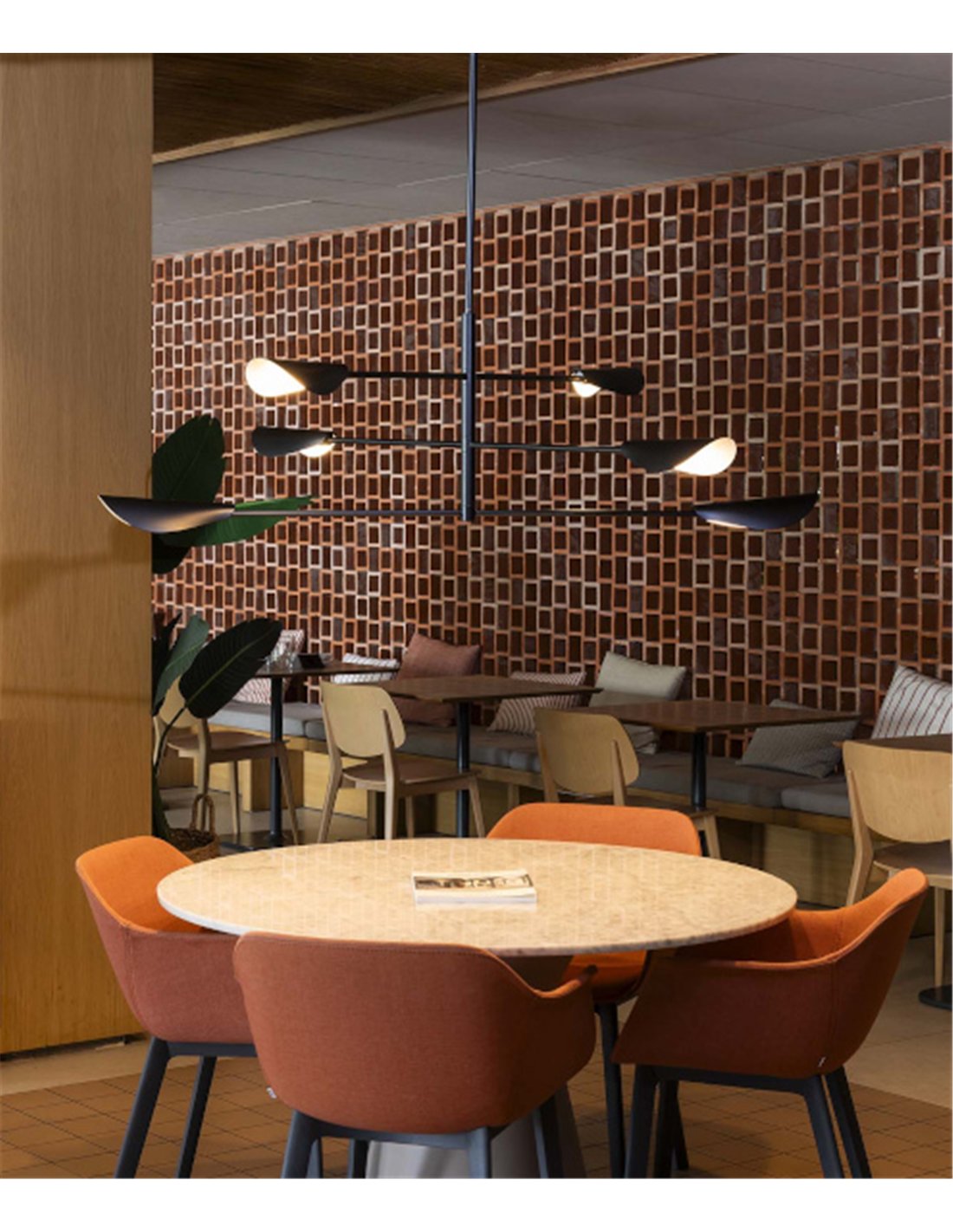 Con un diámetro de 136 cm, se recomienda su instalación sobre mesas grandes, de al menos 180 cm de largo, o en estancias amplias de entre 15 y 25 m², para que la lámpara pueda desplegar su presencia sin sobrecargar el espacio.