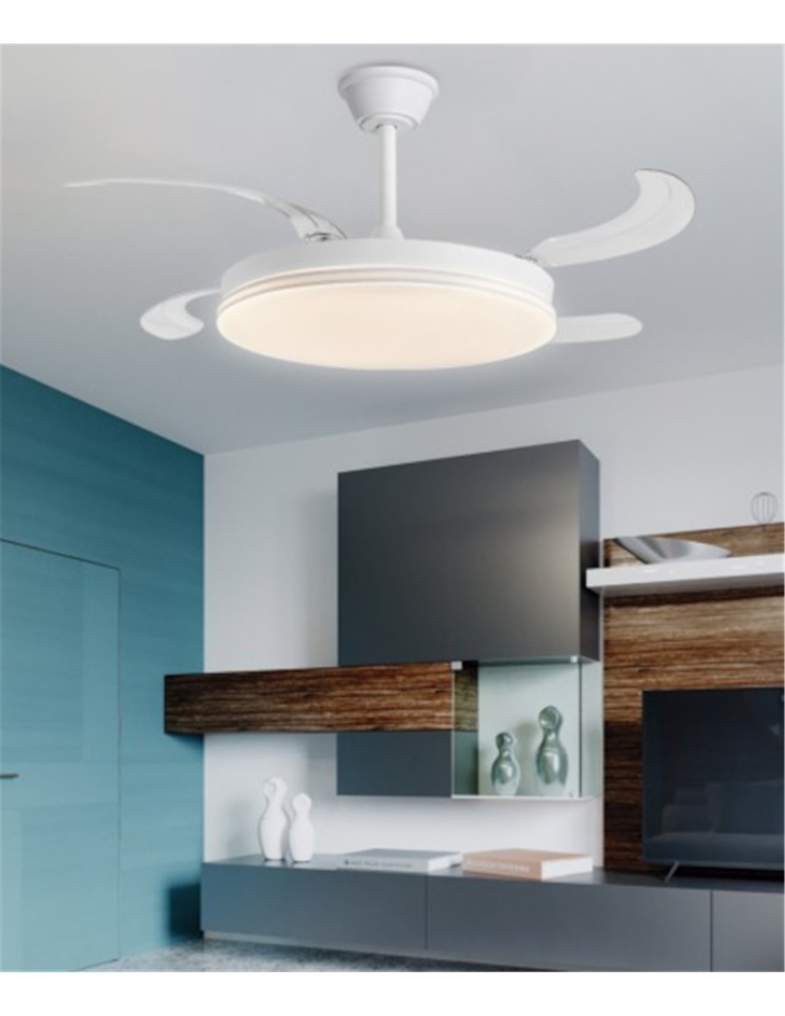Ventilador de techo con luz Ecos - AJP - Ventilador blanco con palas retráctiles