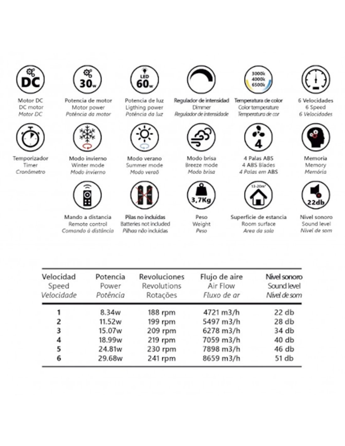 - Ventilador de techo con luz Ecos - AJP - Ventilador blanco con palas retráctiles