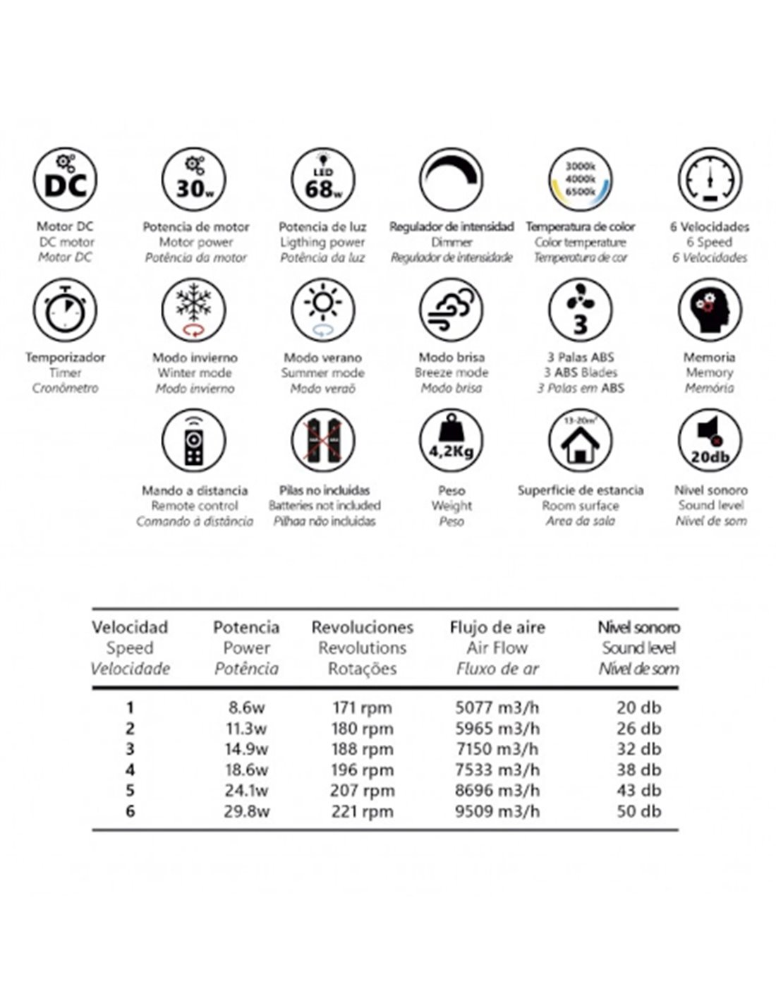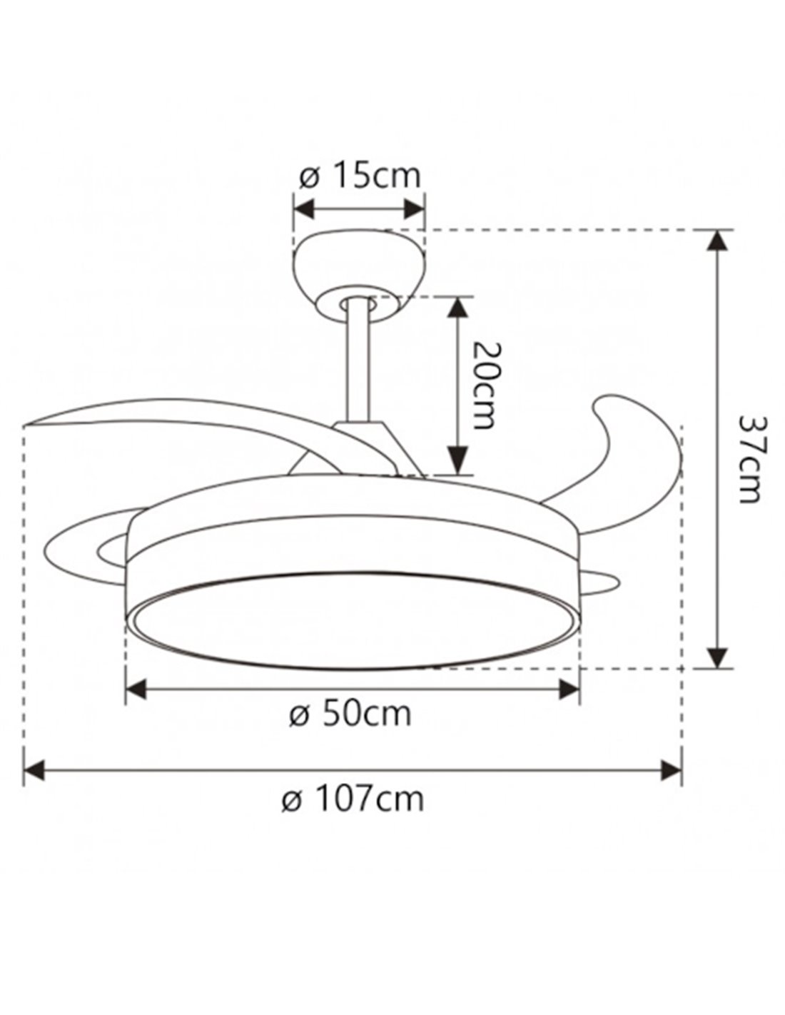 Ventilador de techo con luz Togo - AJP - Ventilador retráctil DC, acabado plateado