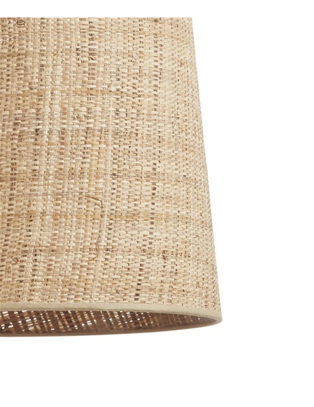 Thais es una colección de lámparas colgantes decorativas de interior que destaca por su pantalla hecha de raphia de Bali, un material natural que aporta calidez, textura y carácter al espacio. Su diseño cónico combina lo artesanal con un toque contemporáneo, gracias al contraste con el acabado en negro de su estructura.