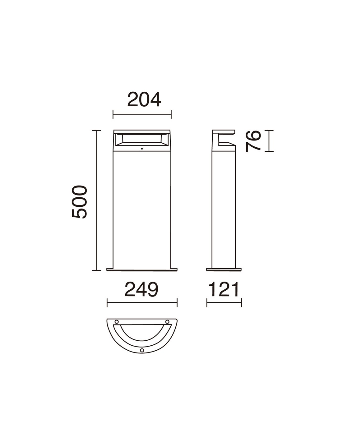 Integra fuente de luz LED SMD de 9,5W, alcanza un flujo luminoso de 1295 lm (3000K) o 1405 lm (4000K), permitiendo elegir la temperatura de color según el tipo de ambiente deseado durante la compra. Su diseño semicircular con aperturas laterales crea un efecto lumínico único, ideal tanto para iluminación ambiental como para delimitar recorridos, siendo perfecta para caminos, senderos, jardines, entradas, terrazas o balcones.