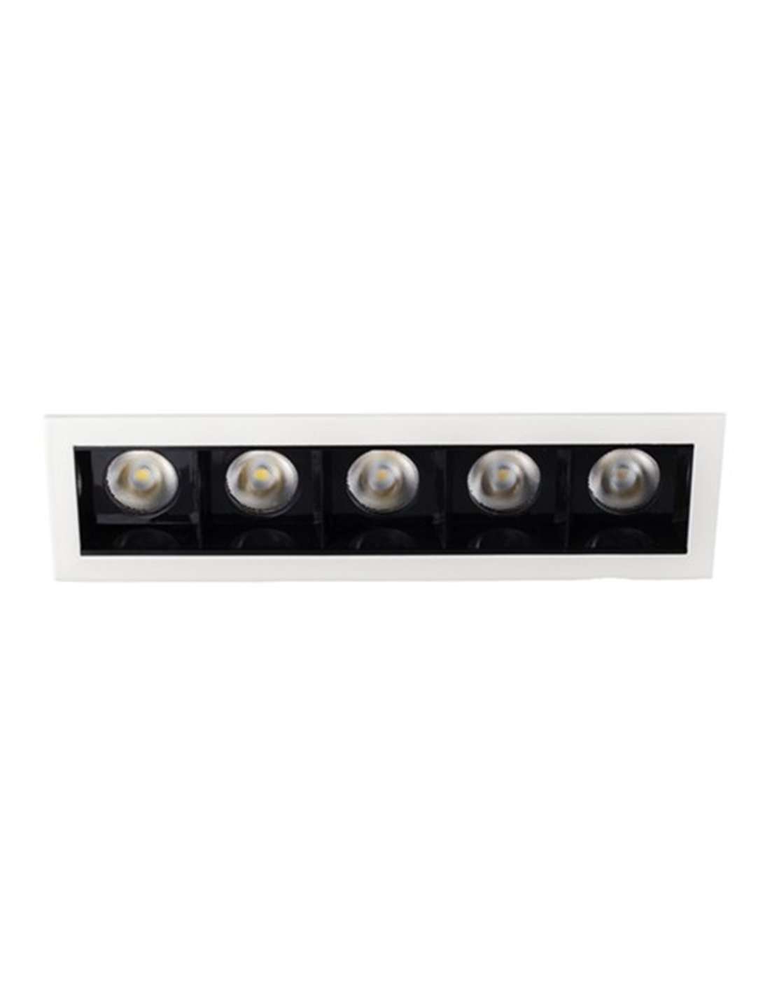 Foco empotrable rectangular fijo acabado blanco de 15W temperatura color 3000K o 4000K. De aluminio. LED CREE CRI90 con lente de 10º. Fuente de alimentación 220-240V AC integrada. Medidas 45x165 mm exterior, 50 mm altura y 158x38 mm de corte rectangular.