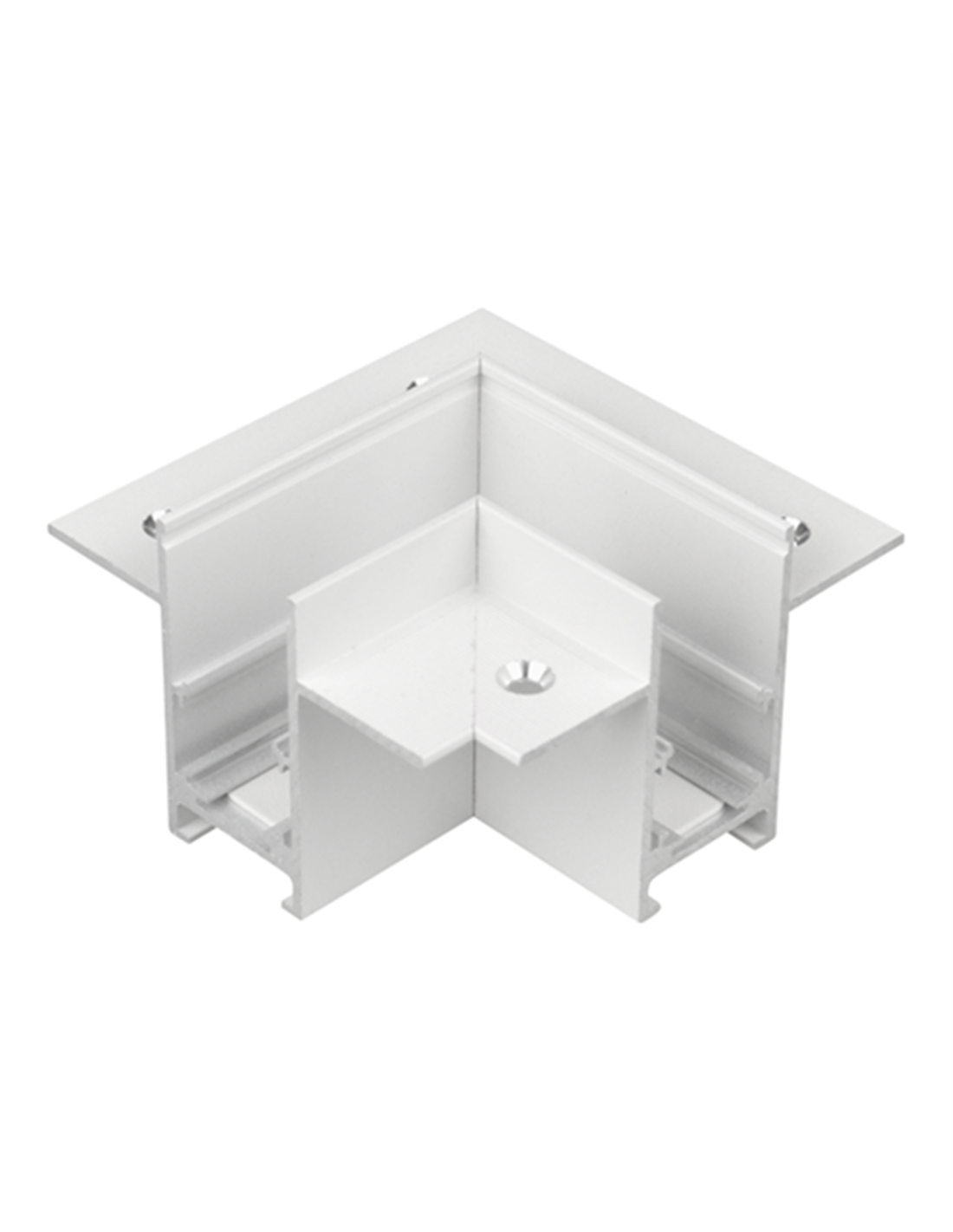 Conexión horizontal en “L” para carril magnético empotrable en escayola modelo RIC, disponible en acabado blanco arenado o negro. Fabricada en aluminio y con una tensión mínima de funcionamiento de 48 V.