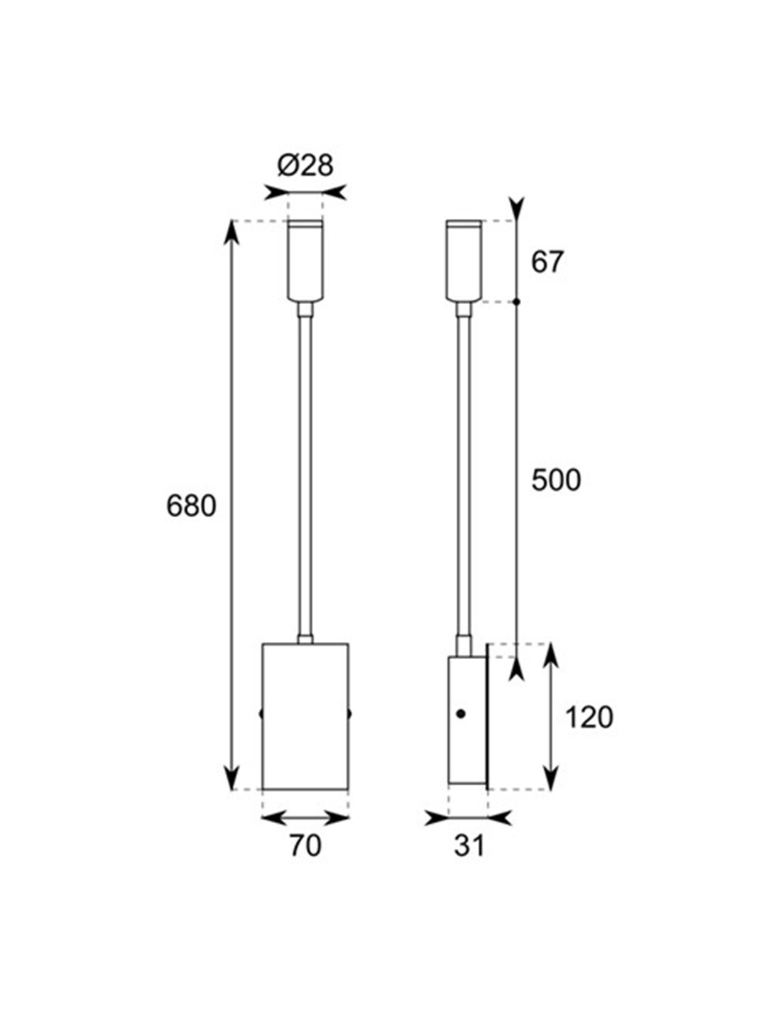 Mide 7 x 3,1 x 68 cm, pesa 600 g y está fabricado en metal y aluminio. Cuenta con un brazo flexible de 50 cm, ranura de carga USB-A, ranura de carga Tipo-C (2,1 A / 5 V) e interruptor de encendido y apagado.