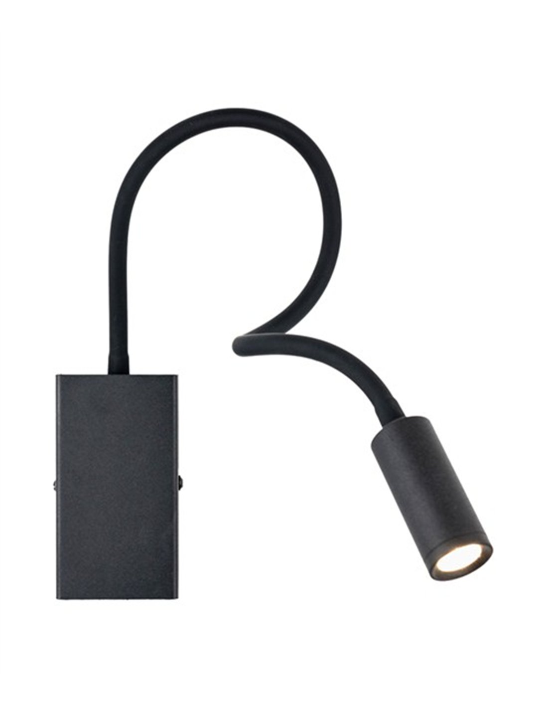 Aplique de pared LED de lectura, modelo CRETA, disponible en acabado blanco arenado o negro. Ofrece una potencia de 3 W, una temperatura de color de 3000 K (luz cálida), un flujo lumínico de 130 lm y un ángulo de apertura de 30°.