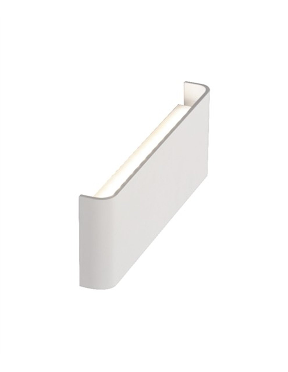 Aplique de pared tipo bañador LED, fabricado en aluminio con difusor de policarbonato. Disponible en acabado blanco mate o negro.