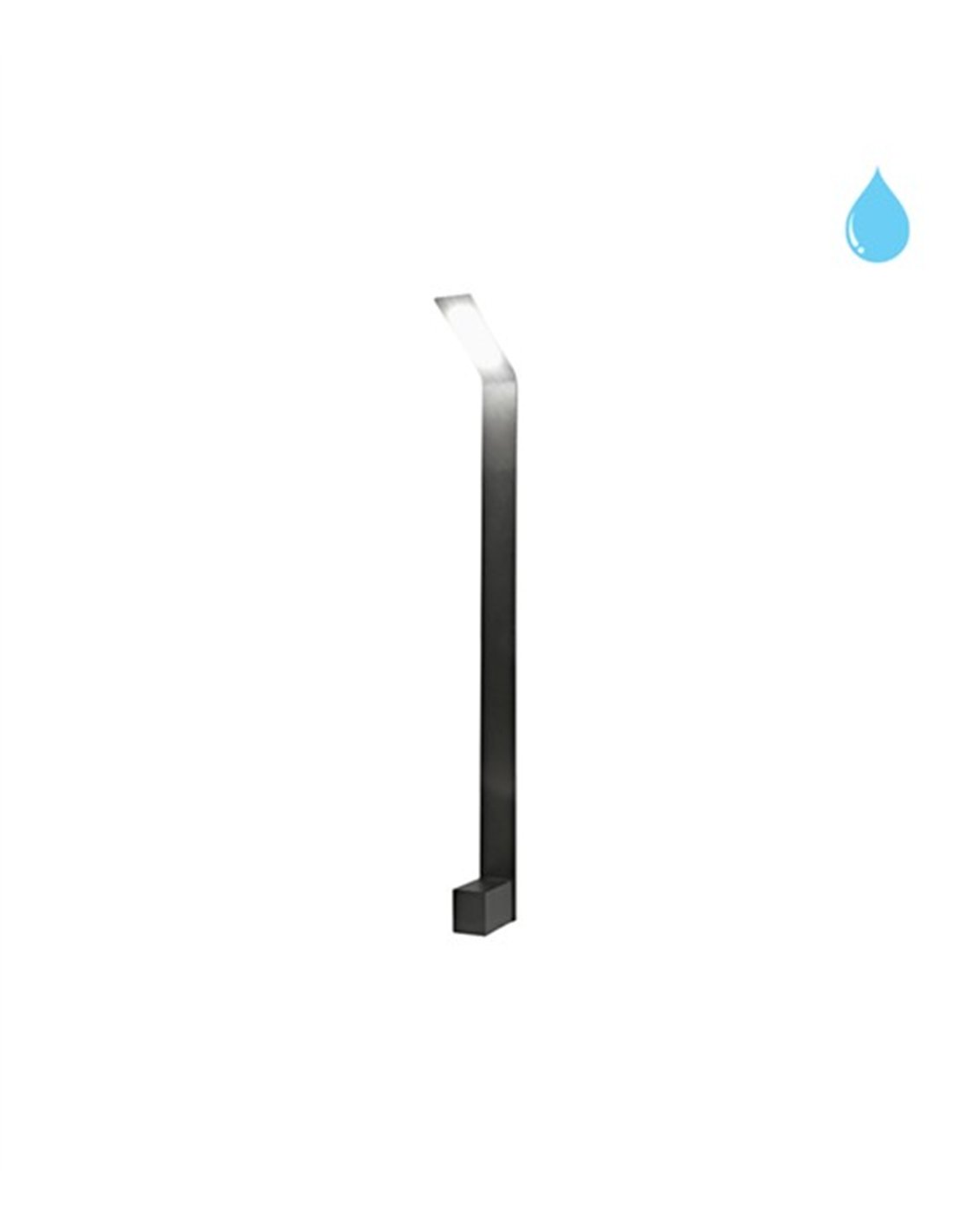 Lámpara baliza de exterior LED modelo ANGU en acabado gris antracita. Dispone de protección IP65 y resistencia a impactos IK06.