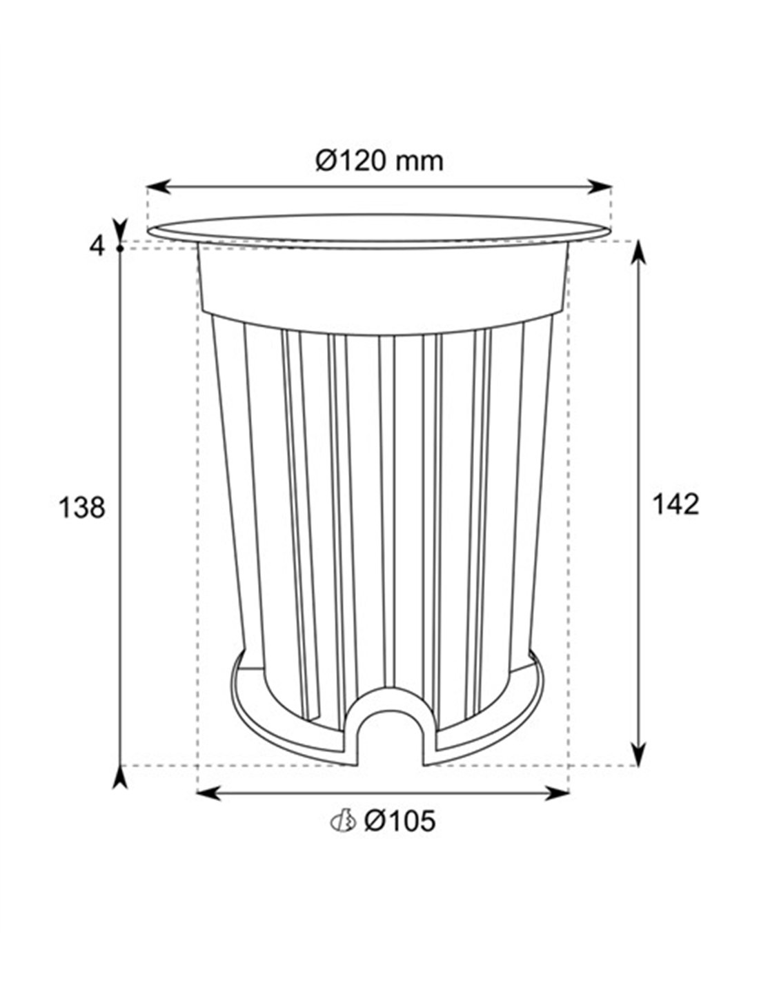 Compatible con bombillas de casquillo GU10 (1xGU10), mide Ø12 x 14,2 cm y requiere un hueco de Ø10,5 cm. Fabricado en acero inoxidable 316 (grado marino) y cristal templado al ácido.