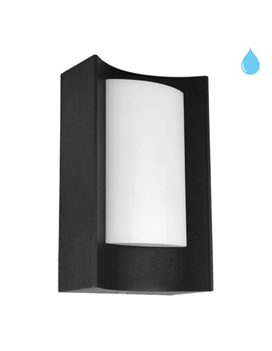 Aplique de exterior LED de 7 W en acabado negro y temperatura de color de 4000 K (luz neutra). Fabricado en aluminio con difusor en policarbonato opal. Mide 200 x 110 x 63 mm.
