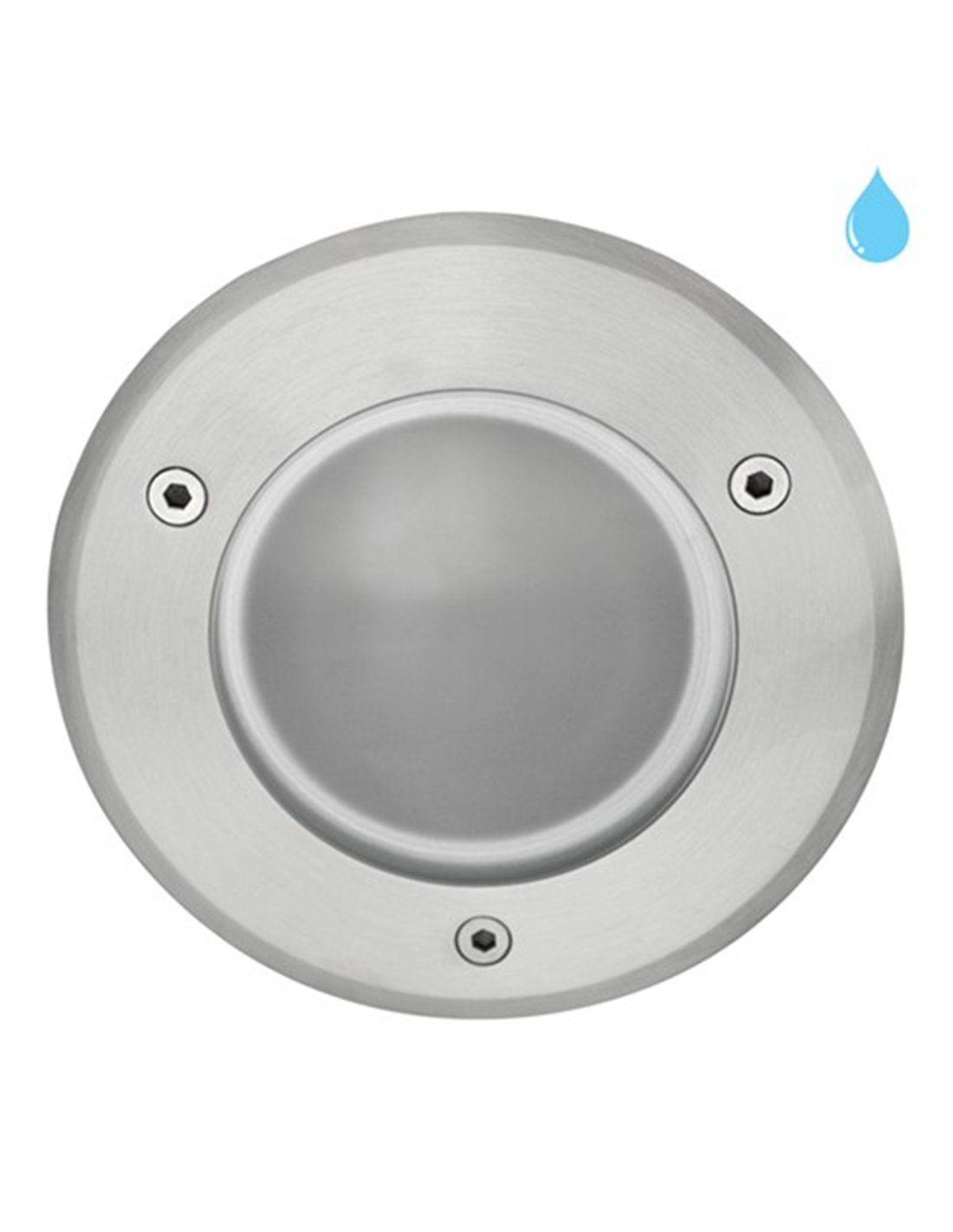 Foco empotrable para suelo modelo NITRA en acabado aluminio, ideal para exteriores. Dispone de protección IP65 y resistencia a impactos IK10.