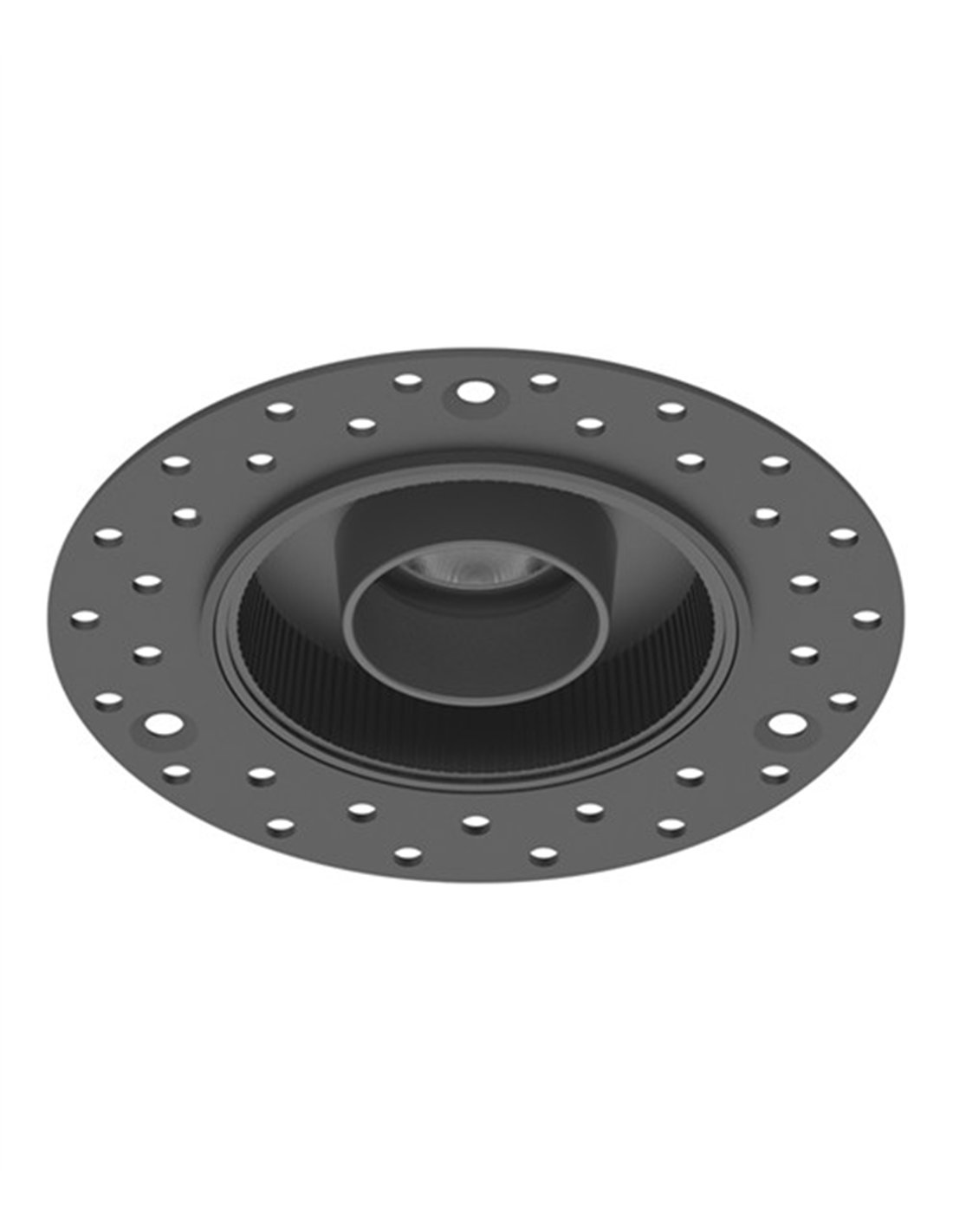 Luminaria LED empotrable redonda modelo HERA en acabado negro. Ofrece una potencia de 6 W y un flujo lumínico de 390 lm. La temperatura de color puede seleccionarse entre 3000 K (luz cálida) o 4000 K (luz neutra). Dispone de un índice de deslumbramiento UGR10 y permite elegir entre diferentes ángulos de apertura: 16°, 24°, 40° o 55°. Mide Ø112 x 72 mm, requiere un hueco de Ø95 mm, pesa 340 g y está fabricada en fundición de aluminio.