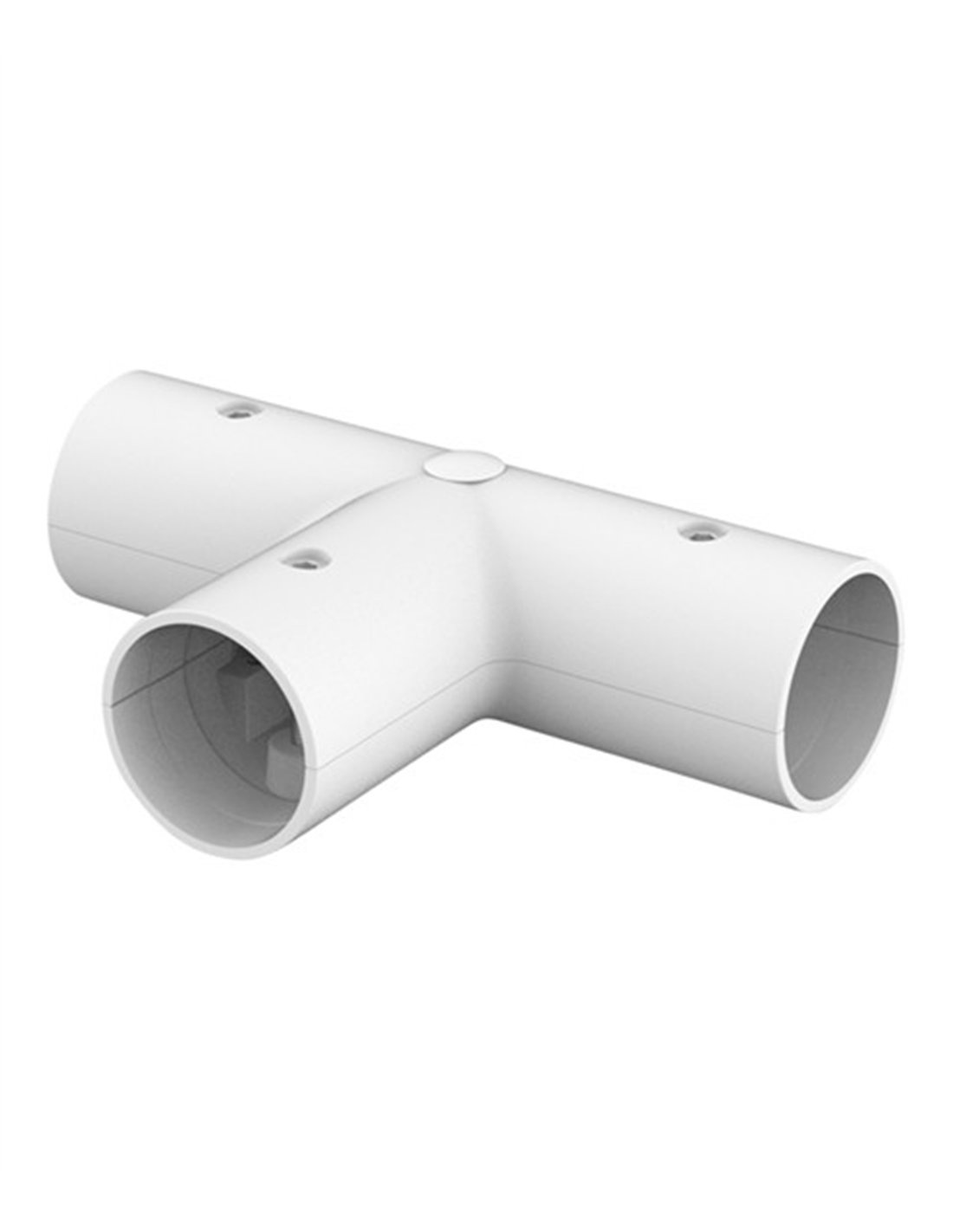Accesorio de conexión en "T" modelo Cosmos con dos acabados a elegir: blanco arenado o negro. Tiene un tamaño de 122 x 78 x 35 mm.