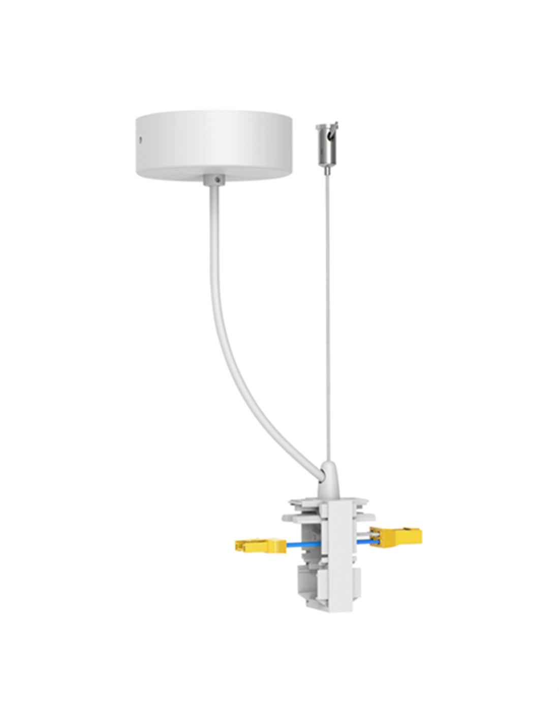 Accesorio de conexión lineal con alimentación para modelos 6017/6018/6019 en acabado blanco o negro. Tamaño de 57 x 35 x 72 mm, longitud de cable máxima de 2 m. Fabricado de aluminio y plástico.