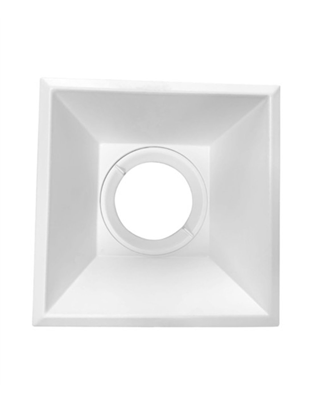 Lámpara empotrable de diseño cuadrado modelo 601, disponible en acabado blanco o negro. Compatible con bombillas de casquillo GU10 (1xGU10). Mide 10,2 x 10,2 x 5,1 cm, requiere un hueco de 9 x 9 cm, pesa 180 g y está fabricada en aluminio.