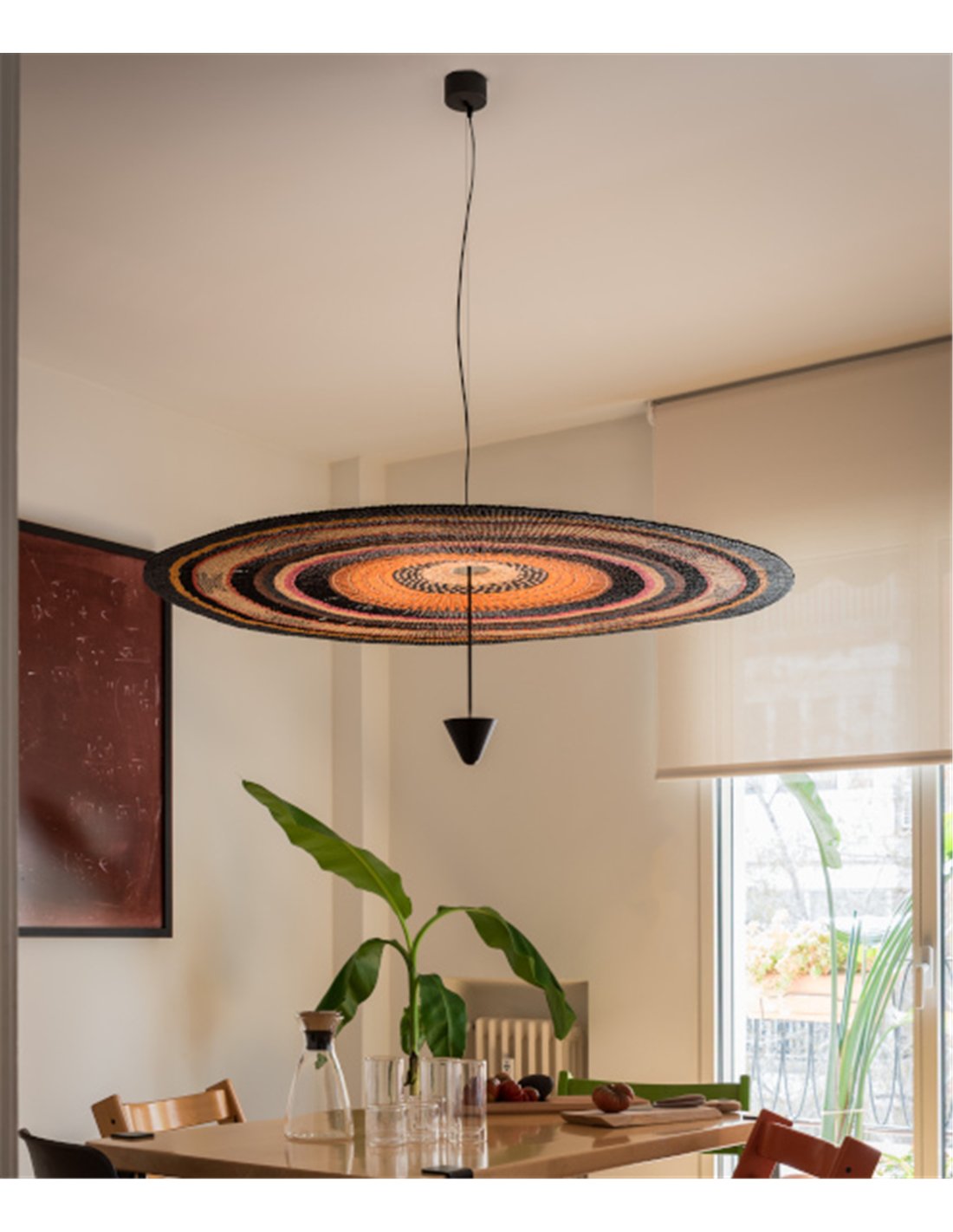 Sobre lámpara colgante Gurunsi de PET Lamp; diseño artesanal de inspiración ghanesa, PET reciclado y fibra de elephant grass, Ø115 cm, GU10 7.9W 2700K