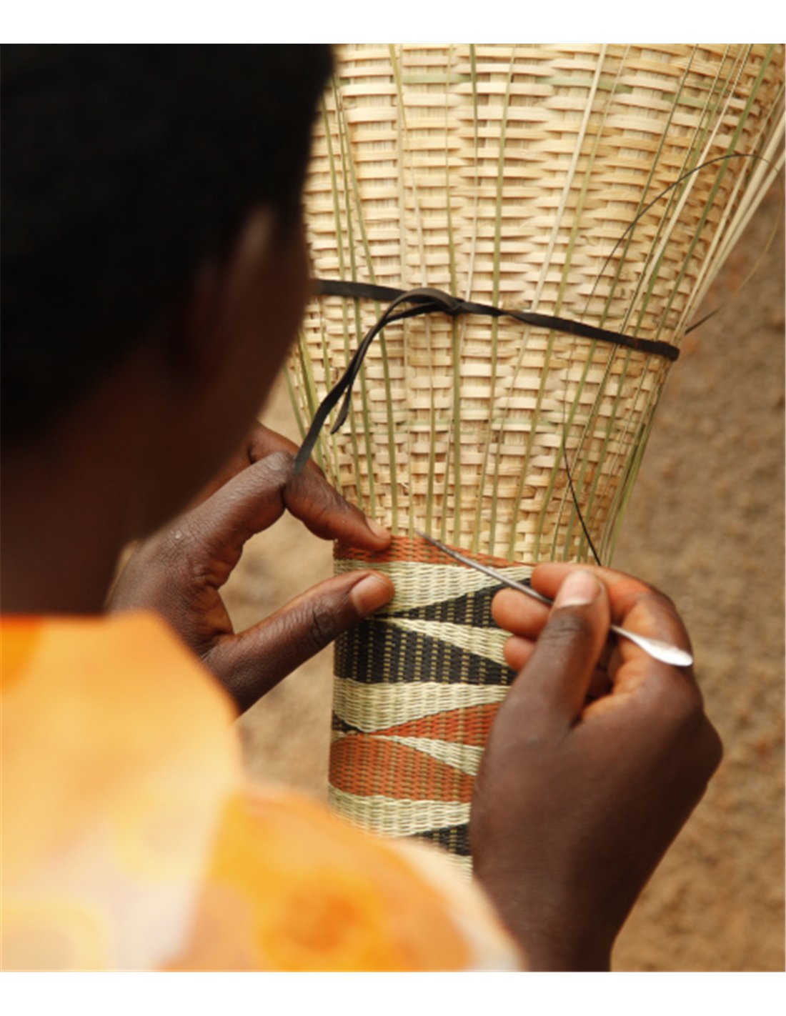 La lámpara colgante Ibisi forma parte de una colección inspirada en la tradición tejedora de la cultura Ibisi en Ruanda. Su fabricación se lleva a cabo por los artesanos locales y el estudio MASS, y rinde homenaje a la técnica ancestral de cestería Uruhindu, caracterizada por su refinado trabajo manual y el uso de materiales naturales como el bambú y el papiro.