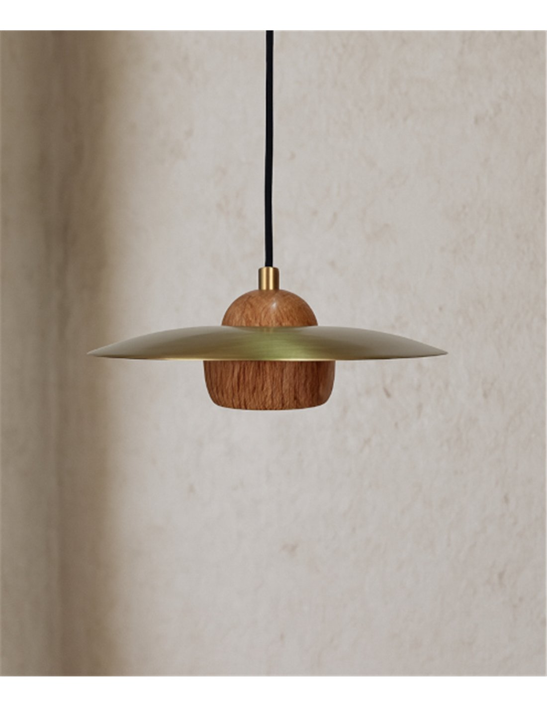 Lámpara colgante Txapela - Pedret Lighting - Lámpara de roble y latón satinado