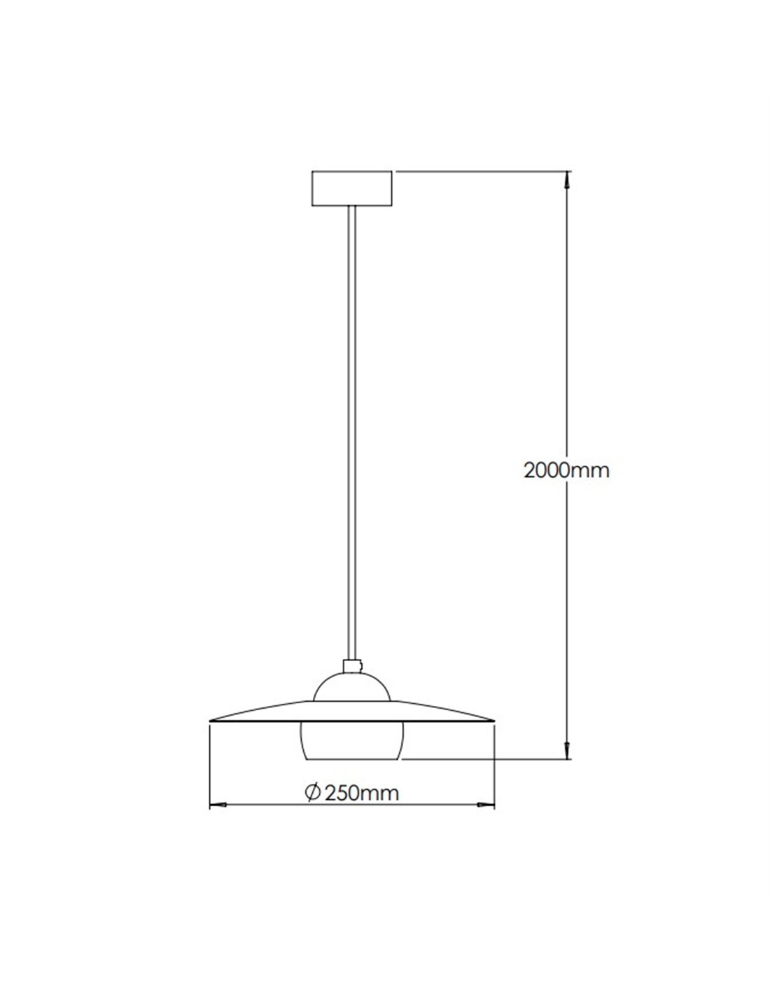 Con una altura total de 200 cm y un diámetro de 25 cm, es muy adecuada para instalar sobre mesas de comedor, encimeras de cocina, barras o en zonas de recepción.