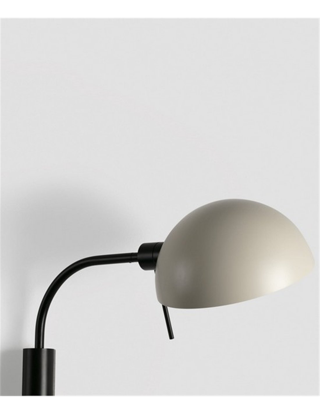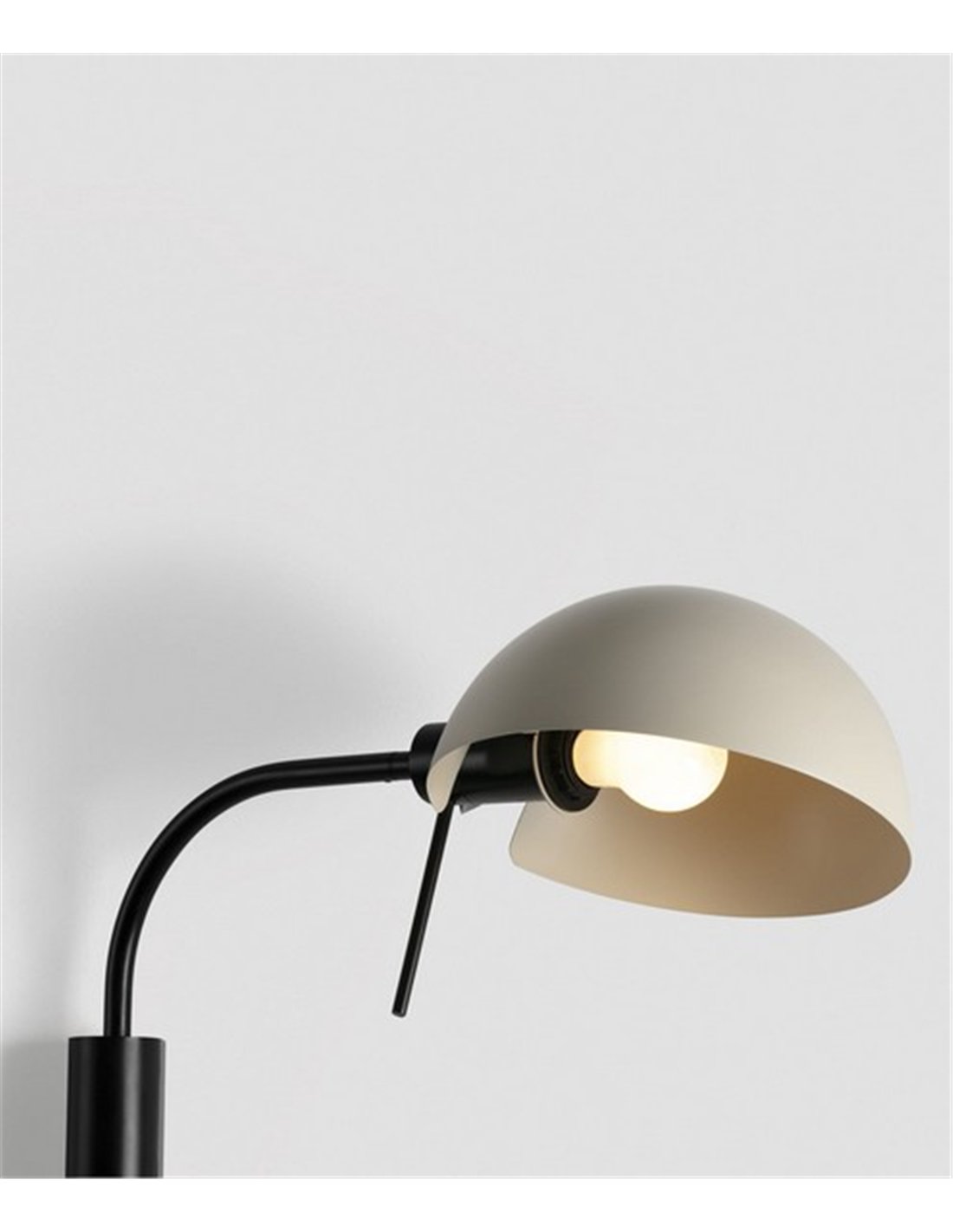 Sobre aplique de pared Dominica de Faro; diseño inspirado en Chicago 1900–1940, brazo orientable, E27 máx. 15W, disponible en beige o negro