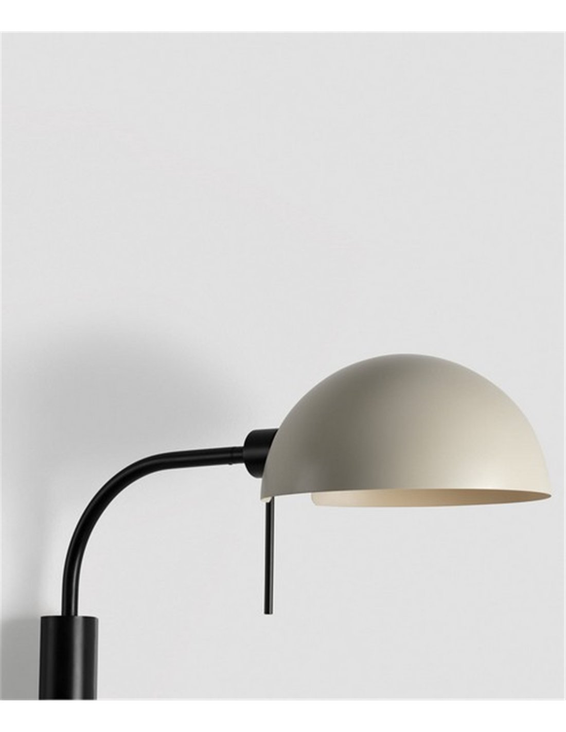 Esta lámpara inspirada en la estética desarrollada en Chicago entre 1900 y 1940 presenta un diseño con formas puras y geométricas, con un brazo de pared de acero en acabado negro y una pantalla metálica disponible en beige o negro. La pantalla es orientable y permite dirigir la luz en un ángulo de rotación de 160º, ya sea para lectura, iluminación puntual o como luz ambiental.