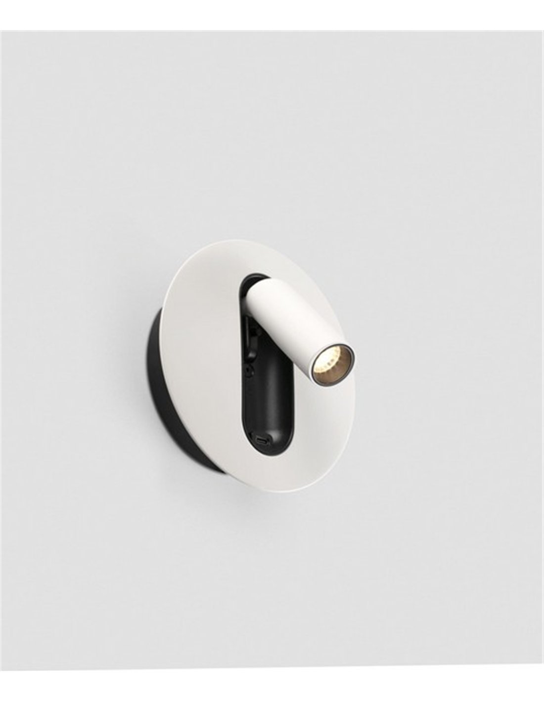 Esta versión incorpora un puerto USB-C de 10W, discretamente integrado en el friso central, permitiendo cargar dispositivos de forma práctica y sin ocupar enchufes adicionales. Se recomieda en dormitorios, salones o espacios que requieren un punto de luz orientable.