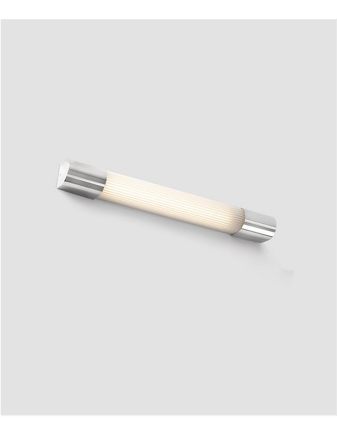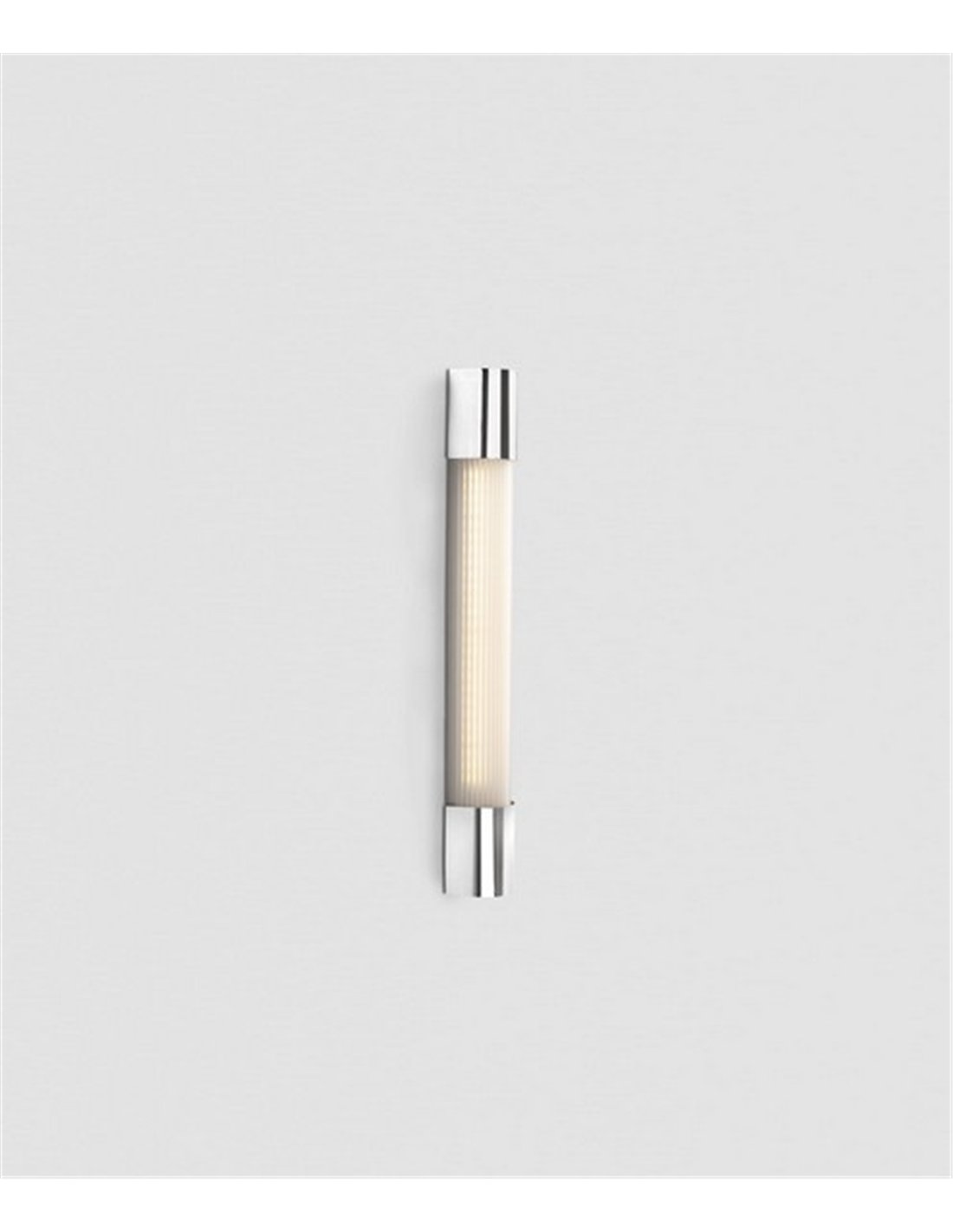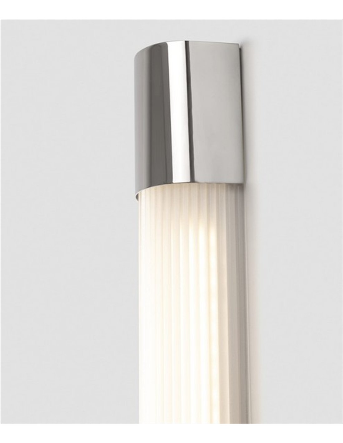 El aplique de pared Kiva combina cromo y tecnología LED para ofrecer una luz brillante, siendo una excelente elección para baños modernos.