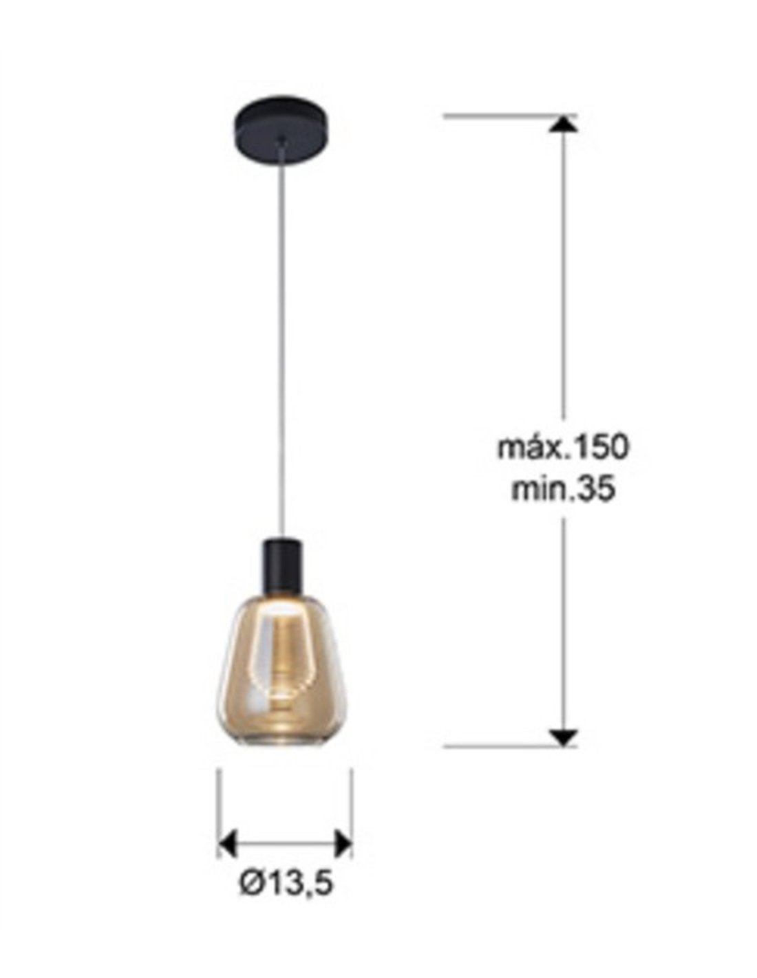 La luminaria es regulable en altura entre 35 y 150 cm, lo que significa su fácil adaptación a diferentes usos y alturas de techo. Incorpora una fuente de luz LED de 5W, 350 lúmenes y una temperatura de color de 3000K, que proporciona una luz cálida adecuada para iluminación ambiental y de acento.