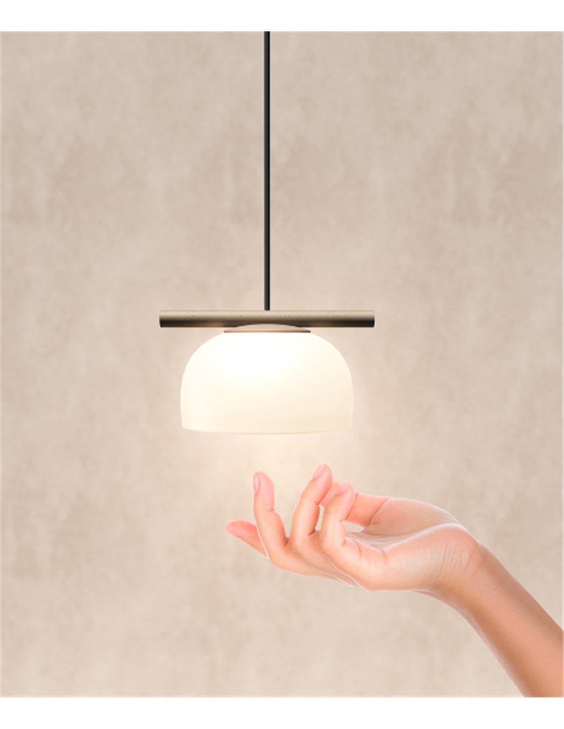 La lámpara colgante Belle Single Cristal de Nexia, diseñada por Nahtrang Studio, pertenece a una familia decorativa orientada a proyectos que requieren una luminaria personalizable. En esta versión, la pantalla es semicircular de cristal con 15 cm de diámetro, suspendida mediante cable de 200 cm e instalada en superficie en el techo. La estructura está disponible en cinco acabados: gris seda (beige), gris cemento (verde), marrón, rojo y negro grafito, lo que facilita adaptar la pieza a diferentes paletas de interior.