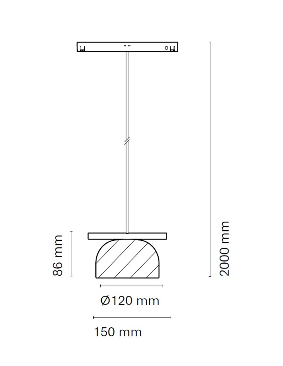 Belle 48V es una lámpara colgante para carril de bajo voltaje. Diseñada por Nahtrang Studio, esta versión incorpora una pantalla semicircular de vidrio opal, que suaviza la emisión de la luz y aporta un resultado visual cálido y muy decorativo.