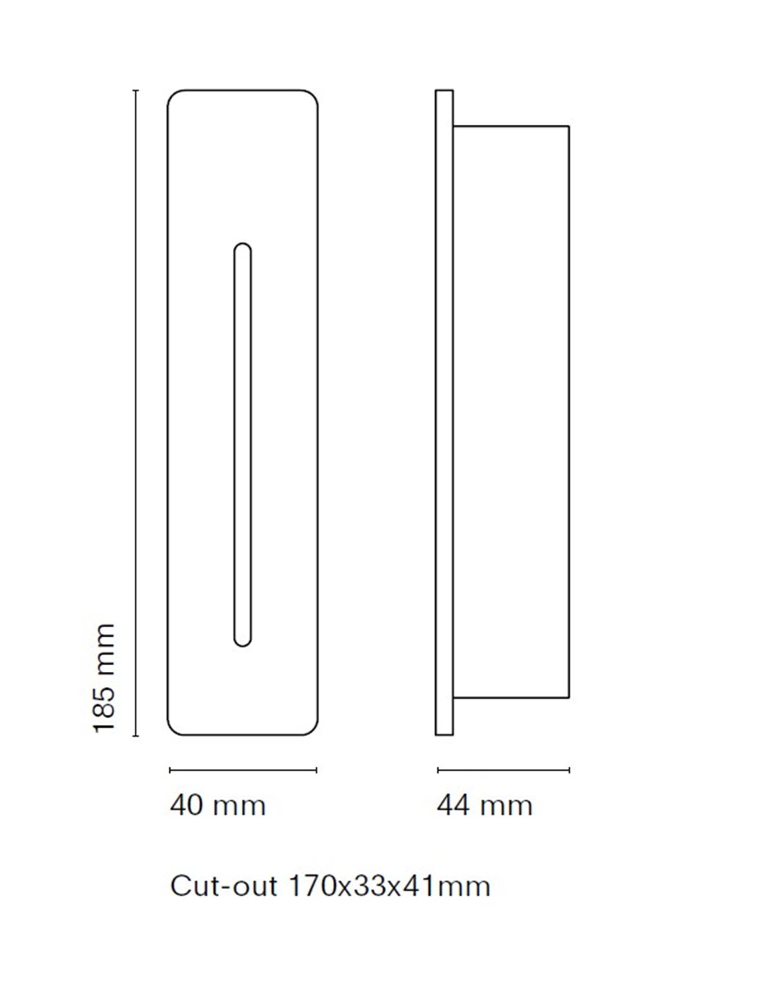 Punt es un empotrable de pared diseñado como luz señalizadora, con una estética arquitectónica y opciones de configuración orientadas a proyectos. Esta versión lineal tiene un formato vertical de 18,5 cm de altura y 4 cm de ancho y requiere un hueco de 17 × 3,3 × 4,1 cm, por lo que es una solución indicada para obra nueva o reformas donde se busque un acabado integrado. Está disponible en blanco o negro.