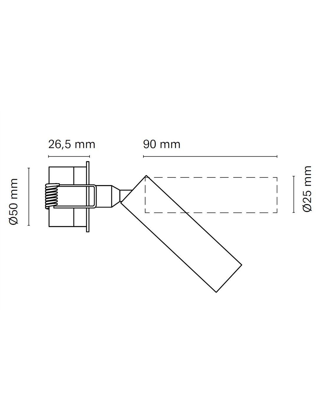 Integra LED de 2W, 110 lúmenes y 2700K, con luz cálida y focalizada. Este flujo está dimensionado para lectura puntual y no para iluminación general.