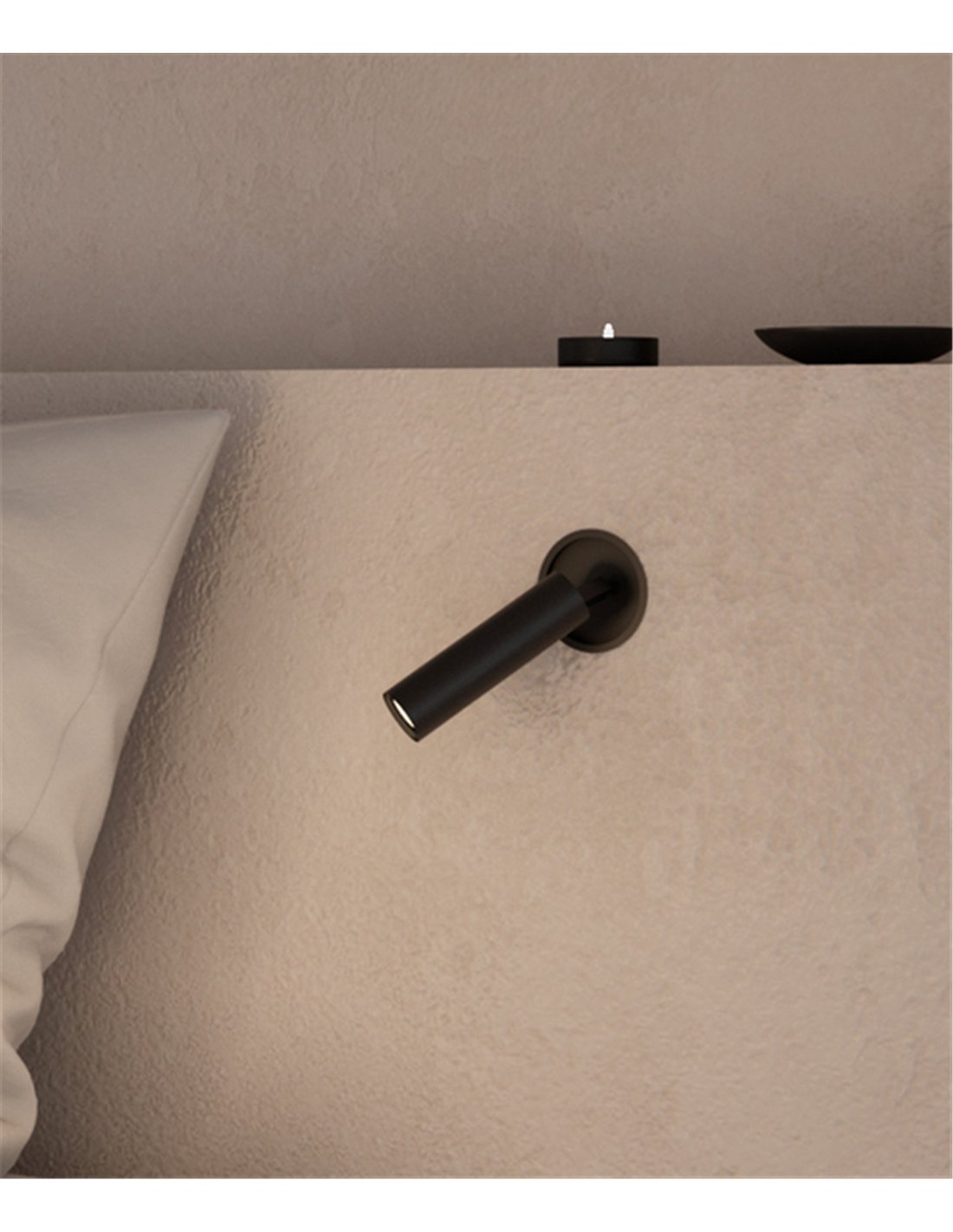 La instalación requiere un taladro de 4,5 cm de diámetro mientras que el encendido se realiza mediante interruptor de pared, facilitando el uso habitual en dormitorio o zonas de descanso. Está disponible en blanco o negro, para adaptarse a paredes claras u oscuras.