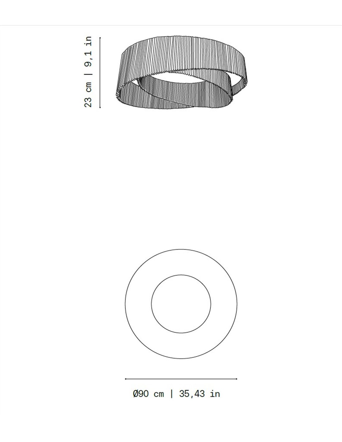 Con 90 cm de diámetro, Anel se convierte en una pieza protagonista ideal para comedores, salones amplios o espacios contract que buscan una iluminación decorativa con personalidad. Incluye cable de suspensión de 150 cm, adaptable a distintas alturas de techo.