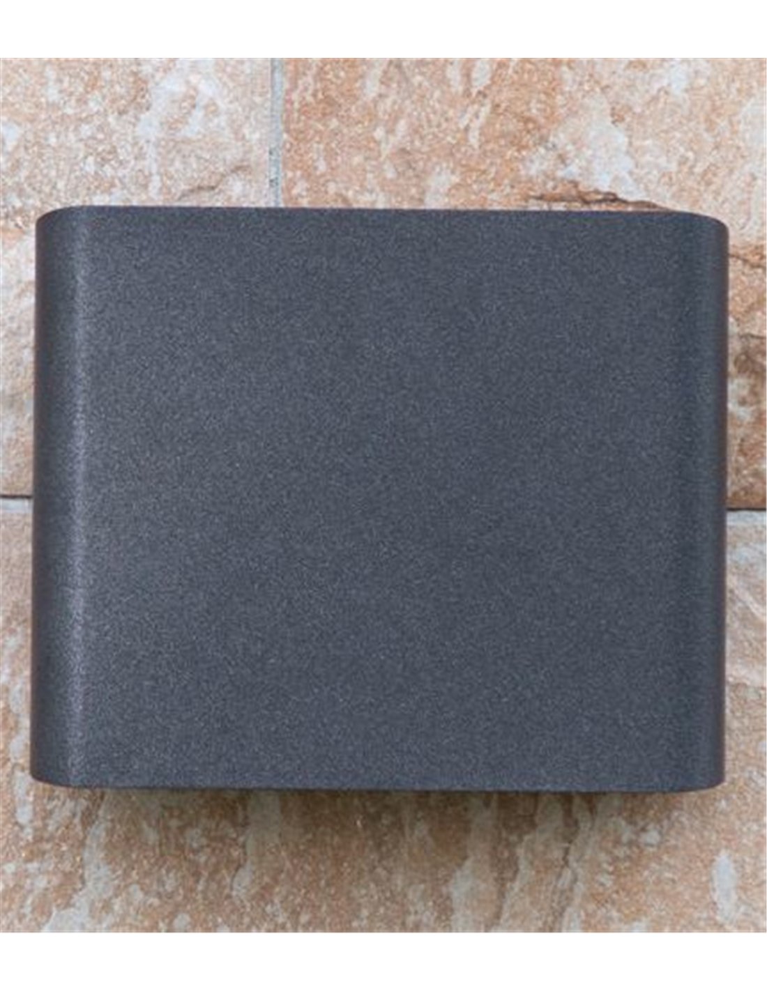 Aplique de pared para exterior de diseño moderno en color antracita. La forma cúbica con laterales planos aporta una estética técnica y discreta en fachada. La doble emisión proyecta luz superior e inferior y permite ajustar el ángulo del haz de 60° a 105° en ambos sentidos, para marcar un efecto más concentrado o más abierto según la pared y la distancia de montaje.