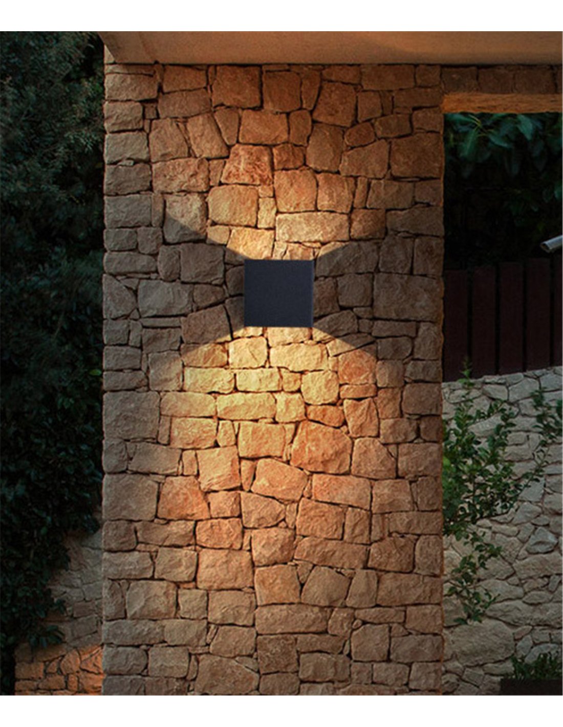 Zerouno es un aplique para exterior en acabado antracita, con diseño moderno de líneas rectas. La doble emisión proyecta luz superior e inferior, creando un efecto marcado sobre la pared para resaltar texturas de fachada y mejorar la orientación en accesos sin deslumbramiento directo. El cuerpo está fabricado en aluminio por inyección e incorpora difusor en vidrio templado. La certificación IP65 garantiza resistencia al polvo y a la lluvia en exteriores.