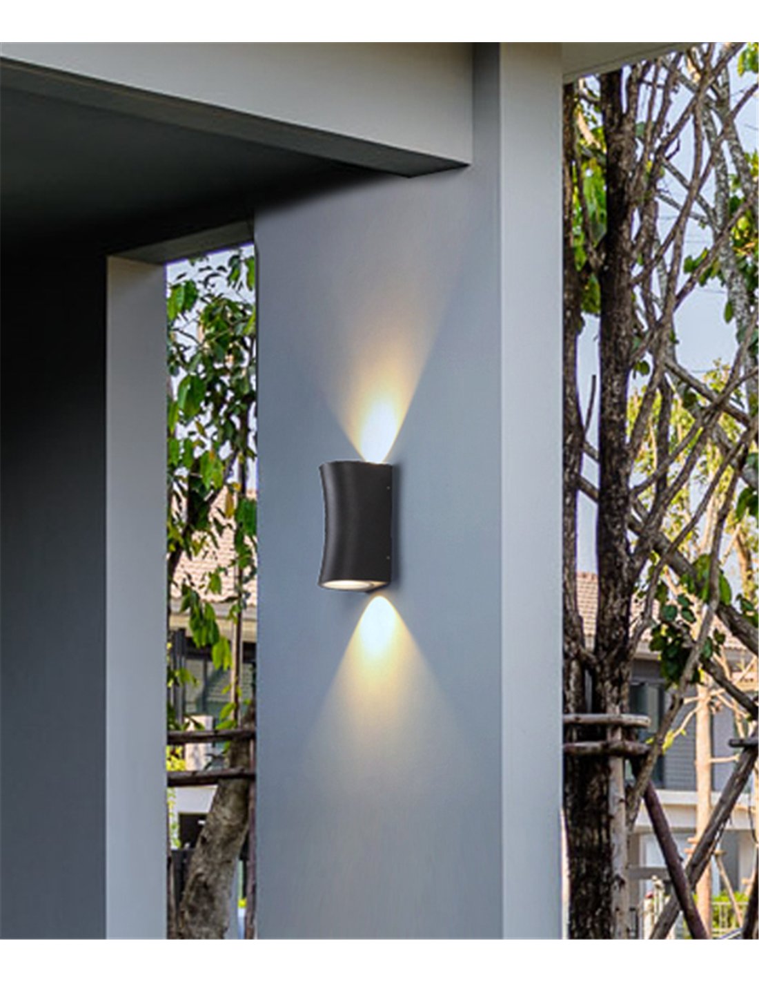Helio es un aplique de pared de diseño moderno, pensado para aportar presencia en fachada mediante doble iluminación (superior e inferior). Con 21 cm de altura, encaja en accesos y laterales de vivienda sin ocupar demasiado en pared, creando un efecto decorativo que resalta el paramento y mejora la orientación.