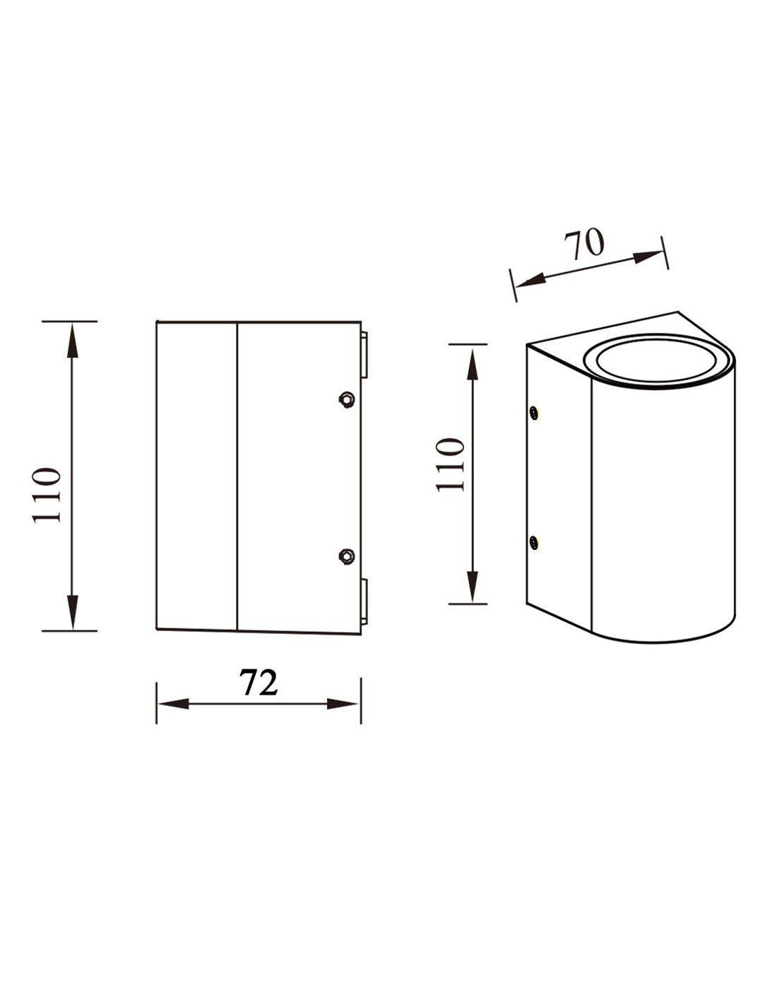 Está disponible en dos tamaños. La versión de 12 cm integra LED 3W 317 lúmenes y emite la luz hacia abajo, pensada para marcar zonas concretas. La versión de 20 cm integra LED 12W 1118 lúmenes y emite hacia arriba y hacia abajo, creando un efecto de luz ambiental en pared y mejorando la visibilidad del entorno.