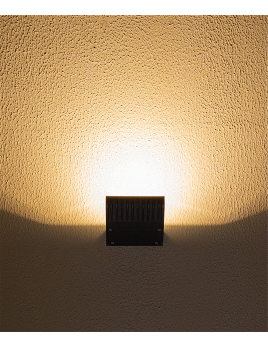 Cap es un aplique mural para exterior con LED integrado, preparado para instalación al aire libre. El cuerpo está fabricado en aluminio inyectado y el difusor es de cristal templado, una combinación pensada para resistir uso exterior y mantener una salida de luz estable. La luminaria viene precableada para facilitar el montaje y cuenta con protección IP65 frente a polvo y lluvia.