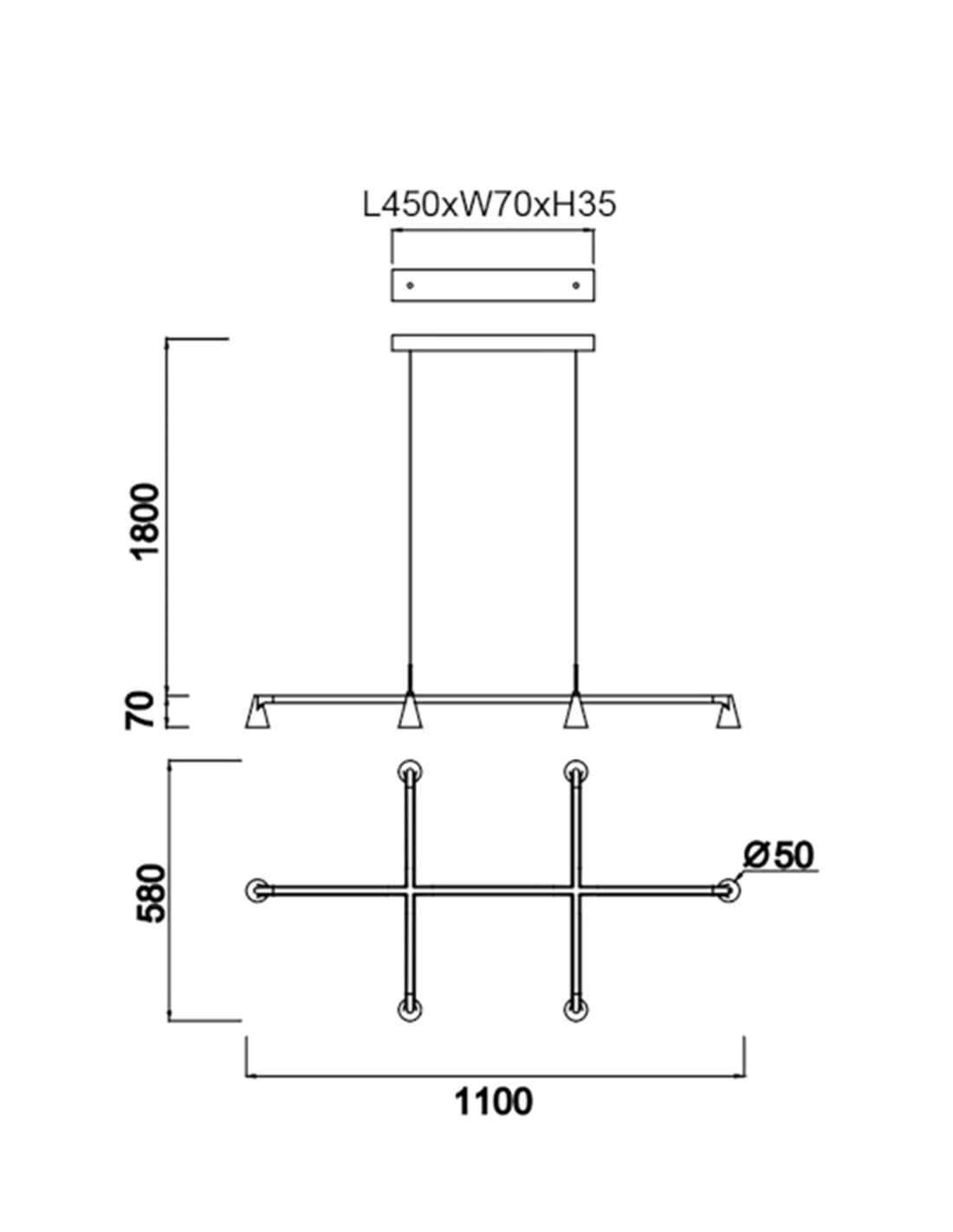 Esta lámpara colgante (la versión más grande de la colección África), fabricada en aluminio y hierro con un elegante acabado negro, destaca por su estructura geométrica de brazos abiertos que integra seis puntos de luz. Con sus 110 cm de ancho, es la compañera ideal para mesas de comedor grandes, islas de cocina o incluso mesas de reuniones, ya que sus focos orientados hacia abajo aseguran que la luz se reparta de forma uniforme por toda la superficie sin dejar zonas en sombra.