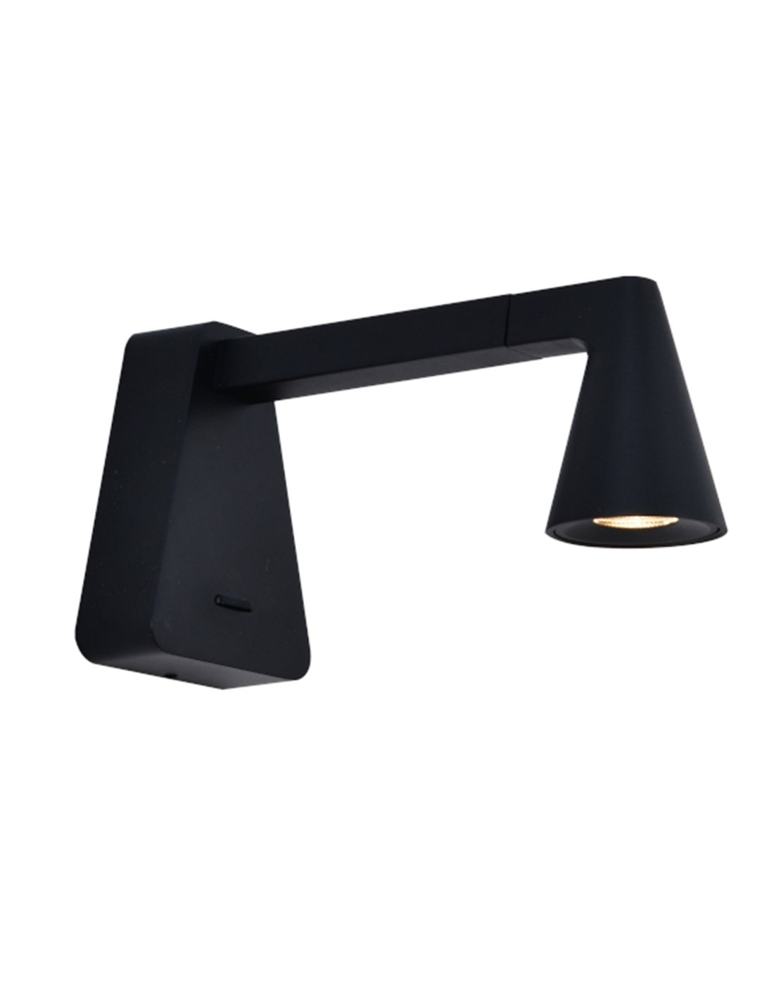 El aplique África en su versión de brazo extendido es la solución ideal para quienes buscan un punto de luz con un extra de alcance y precisión. A diferencia de los modelos más pequeños, su estructura de aluminio negro se proyecta 19 cm hacia adelante, lo que permite que la luz llegue exactamente donde la necesitas sin que tengas que forzar la postura. Es una pieza de diseño geométrico y limpio que queda espectacular en dormitorios modernos sin apenas ocupar espacio en tu mesita de noche.