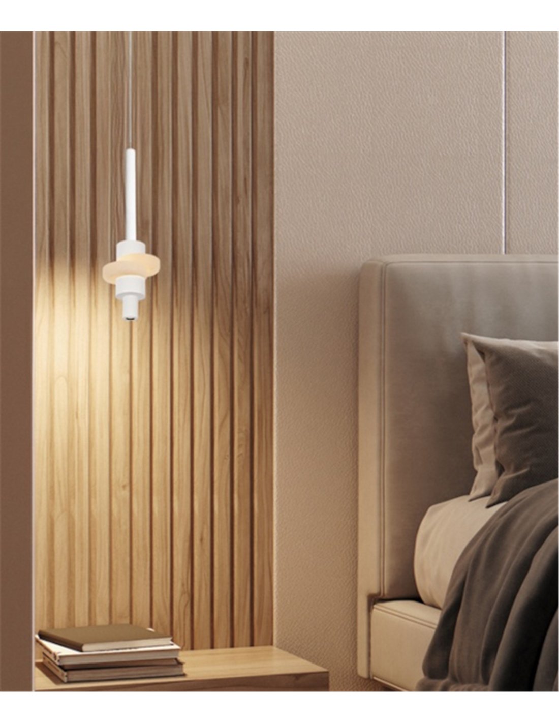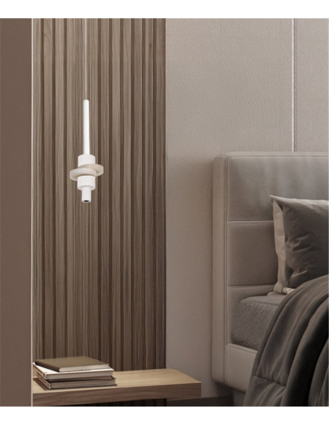 Lámpara colgante Betty de Mantra; diseño minimalista en alabastro, LED 7W 3000K, disponible en 3 colores
