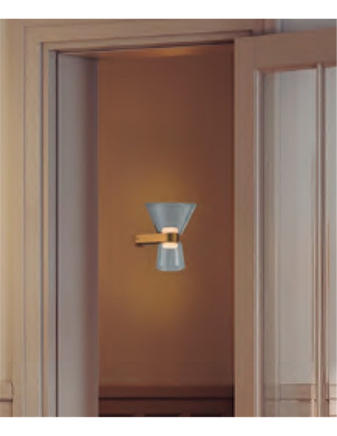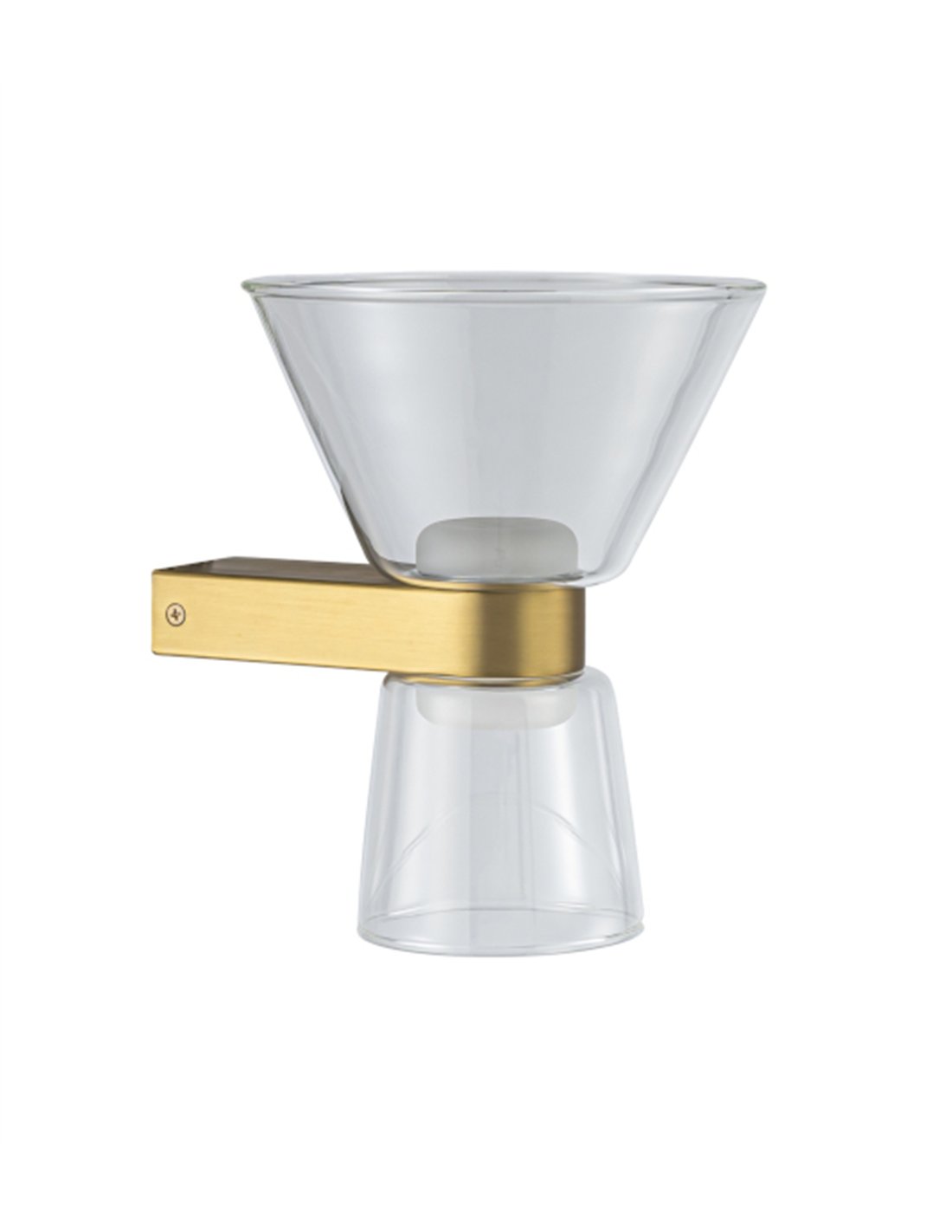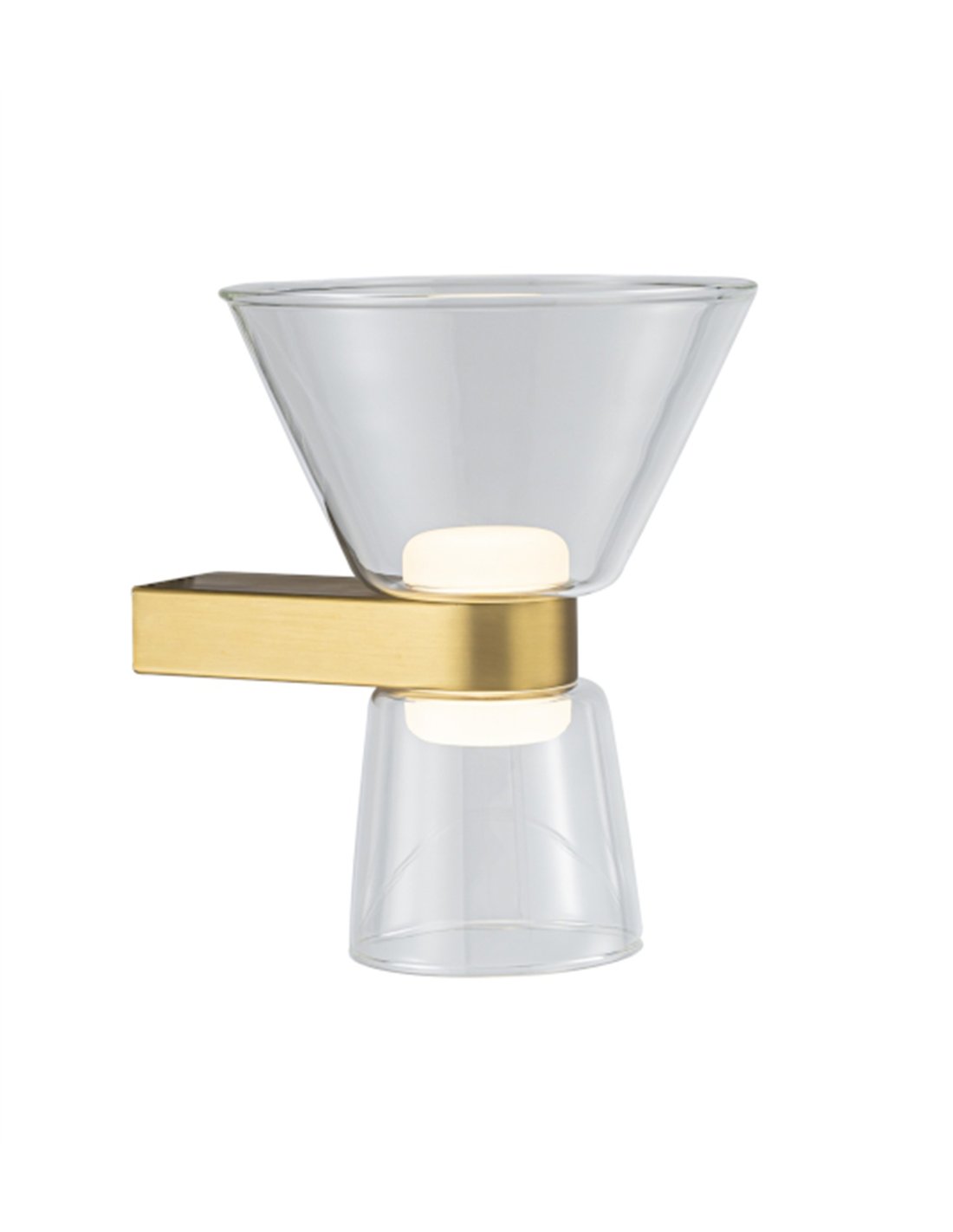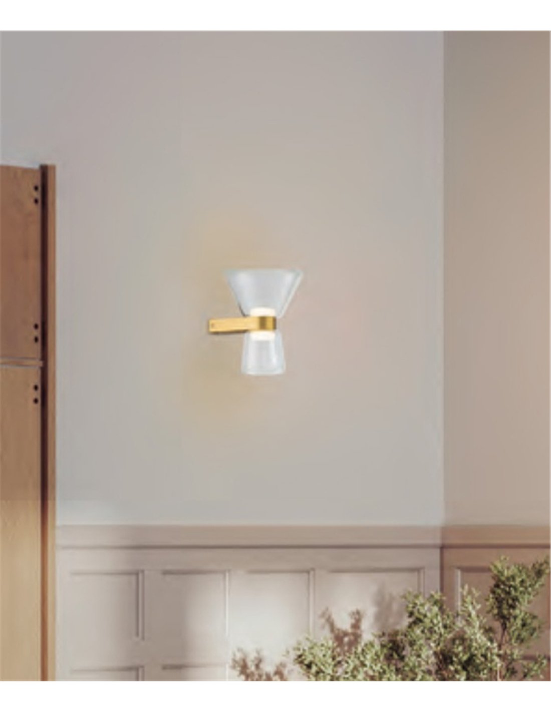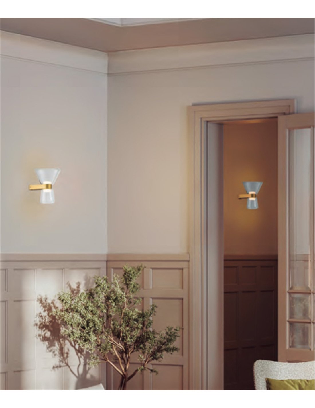 Sobre aplique de pared New York de Mantra; lámpara decorativa con doble iluminación, pantallas de vidrio, acabado oro, LED 3000K 6W