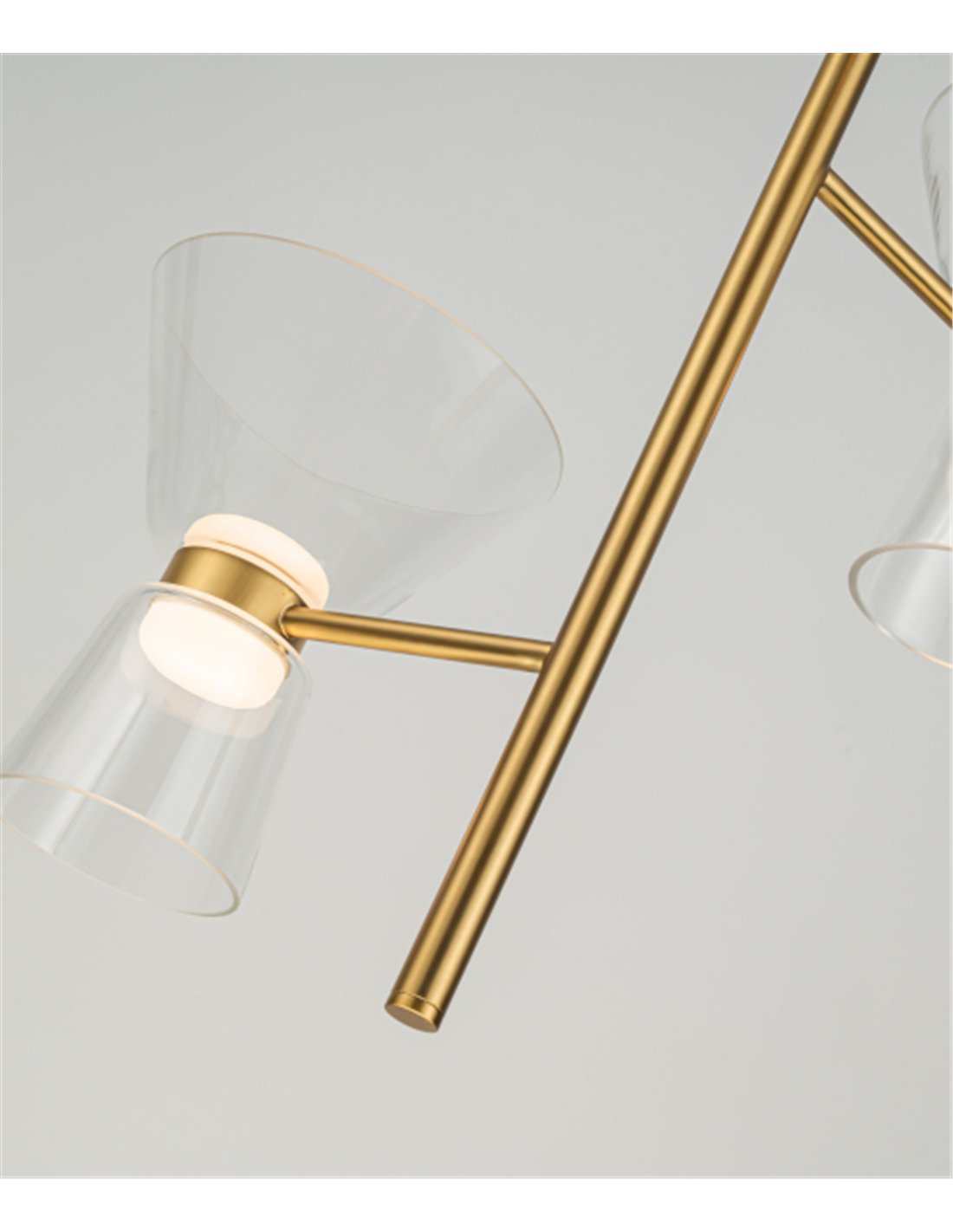 Sobre lámpara colgante New York de Mantra; diseño elegante y decorativo, 3 luces, acabado oro, pantallas de cristal, LED 18W 3000K