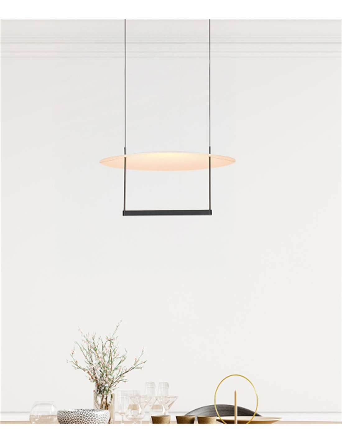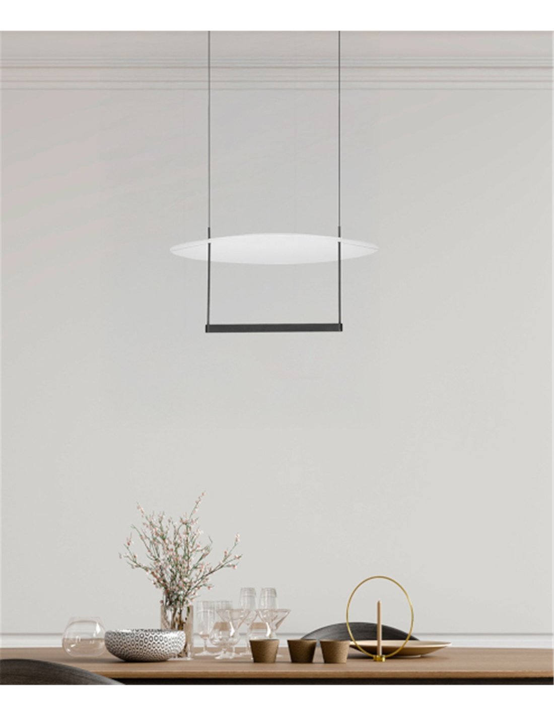 Sun II es una pieza pensada para transformar por completo la atmósfera de tus espacios favoritos a través de un diseño contemporáneo y una funcionalidad sorprendente. Su estructura, definida por una elegante pantalla circular suspendida y una línea inferior en acabado negro que integra puntos de luz adicionales, logra un equilibrio visual perfecto que encaja de forma natural en cualquier interior moderno.