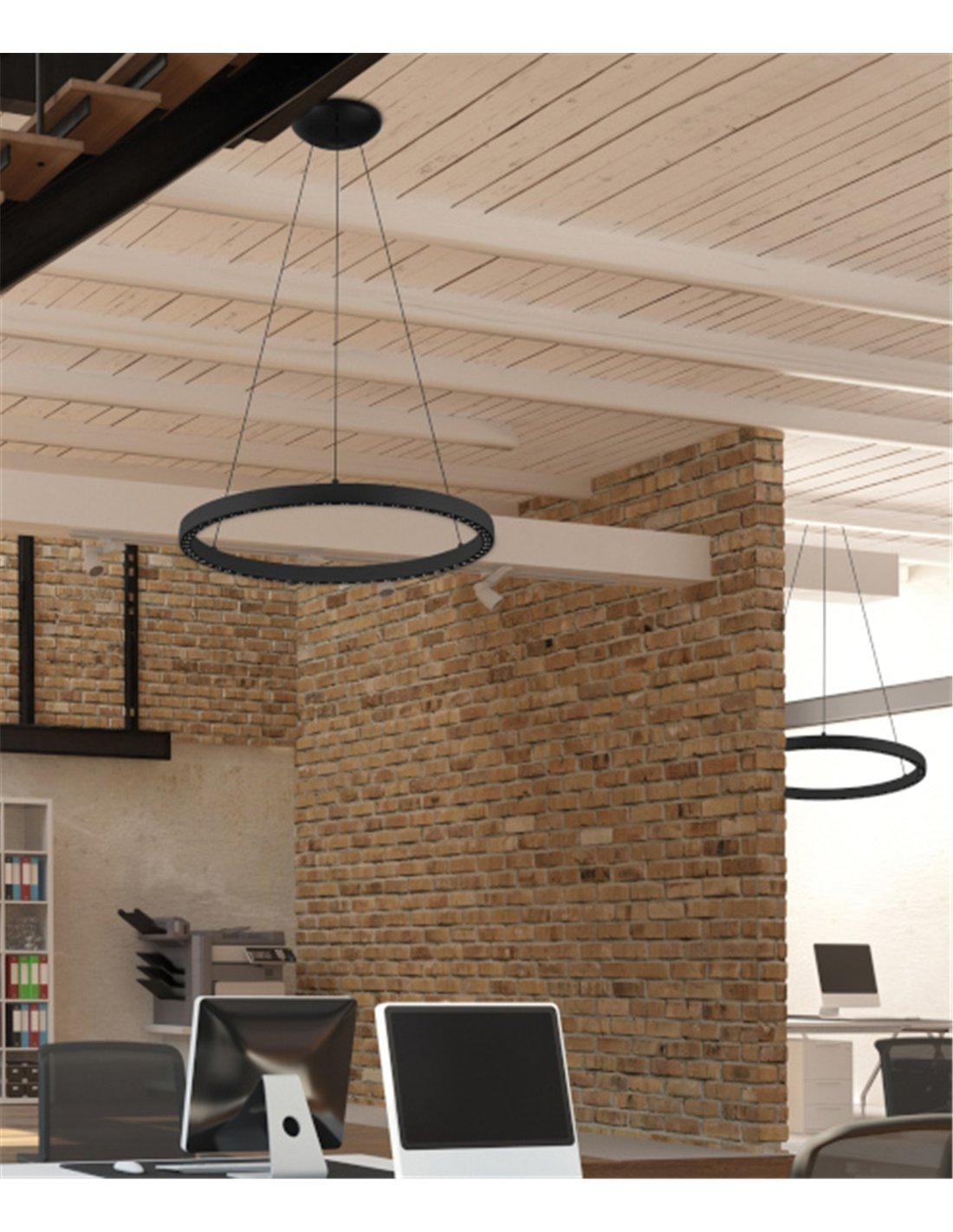 Sobre lámpara colgante Riumar de Mantra; diseño circular disponible en 3 colores, LED 3000K, 2 tamaños, altura ajustable