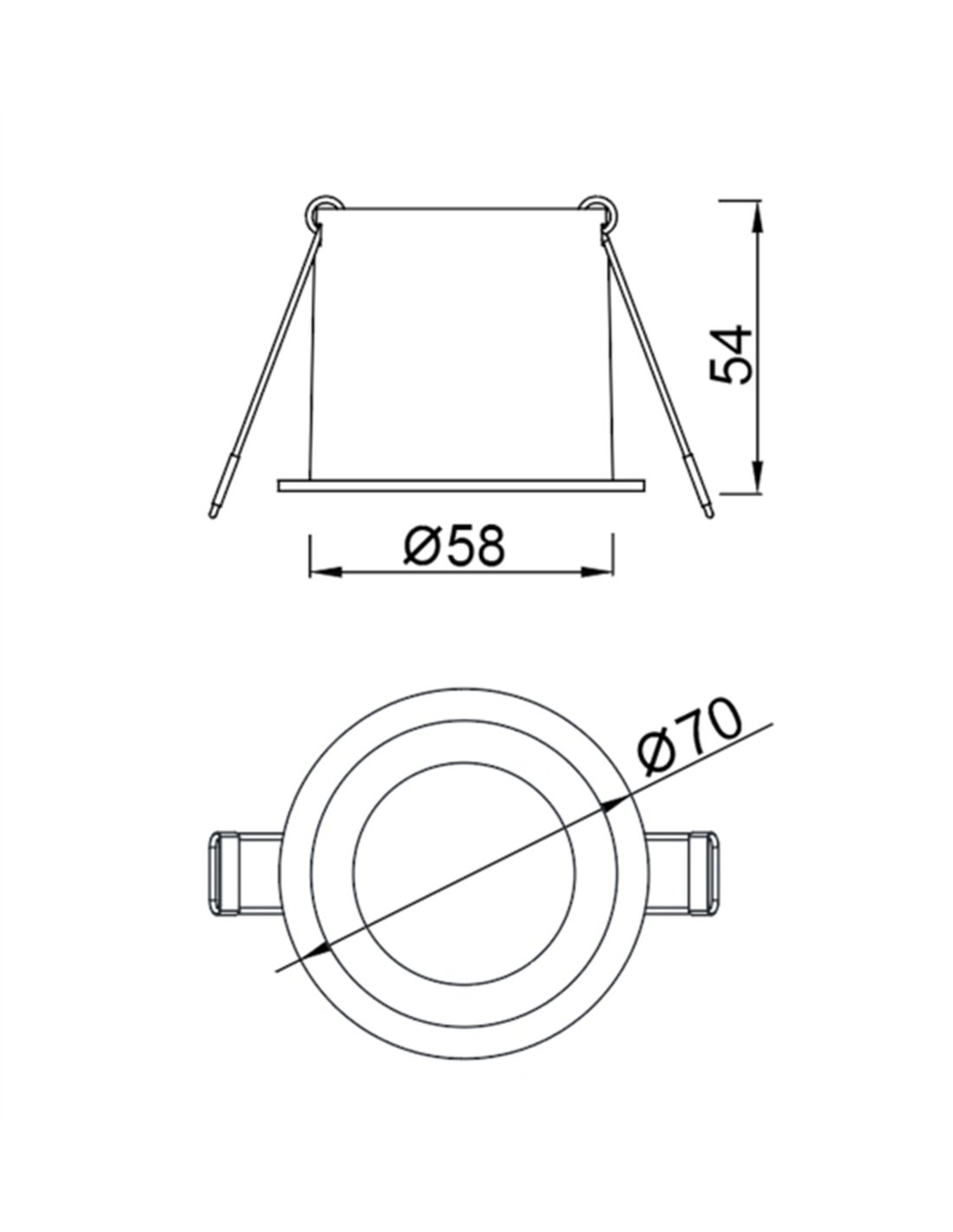 Tiene un diámetro de 7 cm y una altura de 5,4 cm, por lo que es especialmente amable con los techos que tienen poco fondo. Requiere un corte de 6 cm, una medida estándar que facilita enormemente su integración en cualquier proyecto de reforma o nueva construcción.