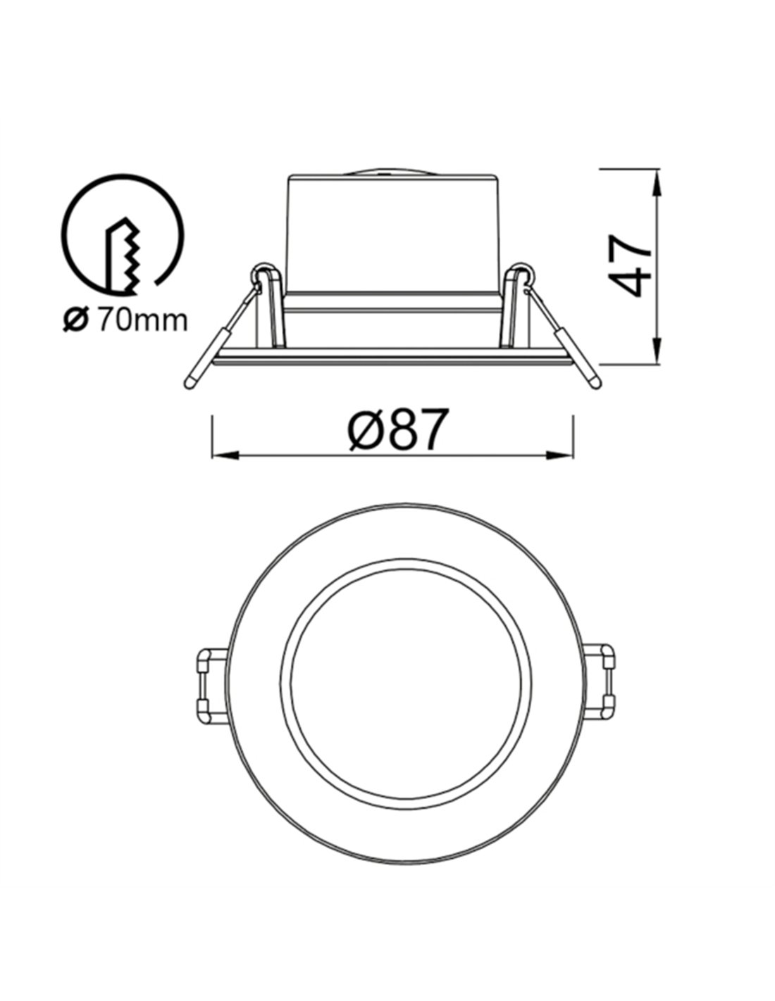 Para que el proyecto lumínico sea impecable, este modelo se presenta en dos tamaños. La versión más pequeña de 8,7 cm (6W 630 lm) es ideal para aseos pequeños o puntos de apoyo específicos, mientras que el modelo de 10,5 cm (10W 1000 lm) sube la intensidad para estancias que demanden mayor claridad.