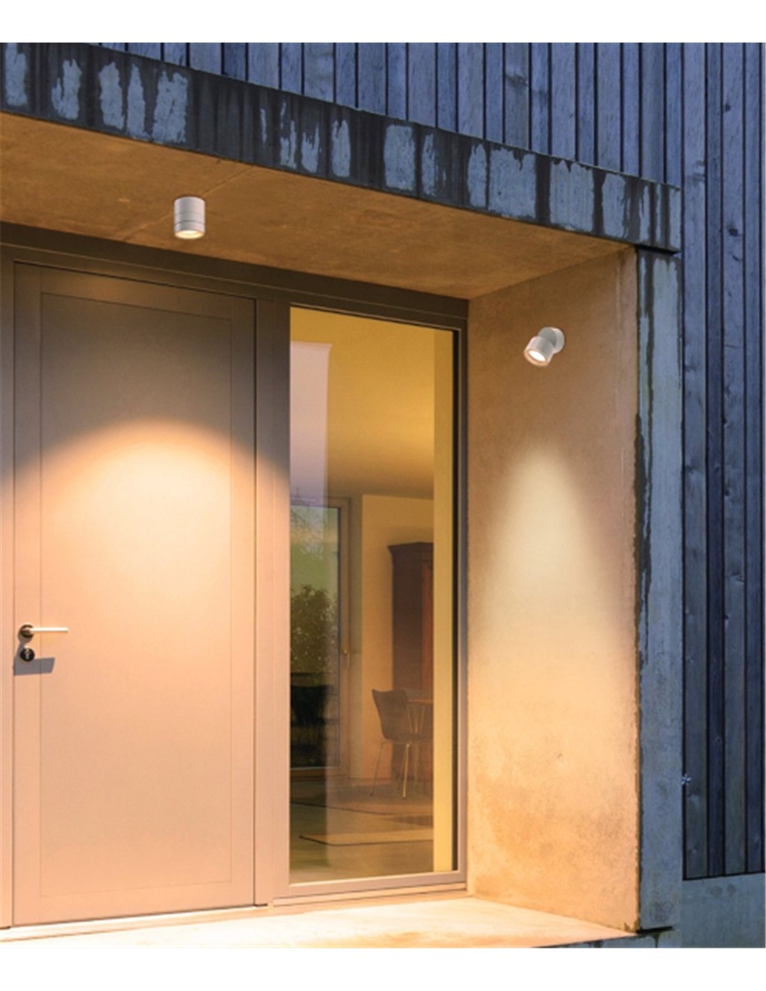 Saler destaca por un diseño cilíndrico y actual, que esconde una sorpresa funcional: su cabezal es orientable de 0º a 90º. Esta libertad de movimiento te permite decidir si quieres una luz clásica desde el techo o si prefieres dirigir el haz hacia una puerta, un número o un camino específico. Es, en esencia, un foco que se comporta como un proyector técnico pero con la elegancia de un aplique decorativo.